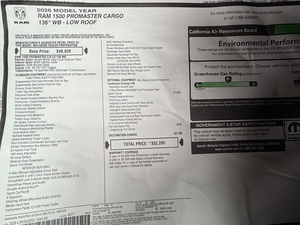 2026 Ram ProMaster Tradesman 1500 136 Low Roof Full-Size