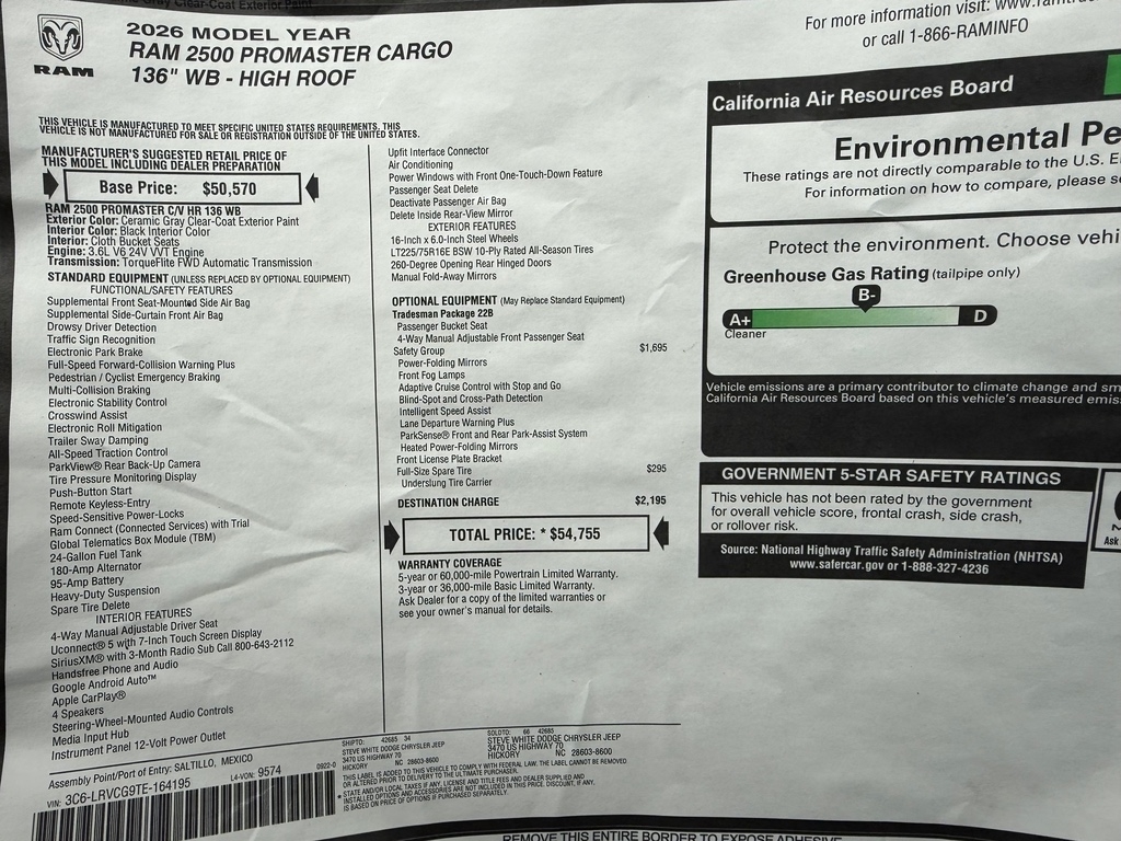 2026 Ram ProMaster Tradesman 2500 136 High Roof Full-Size
