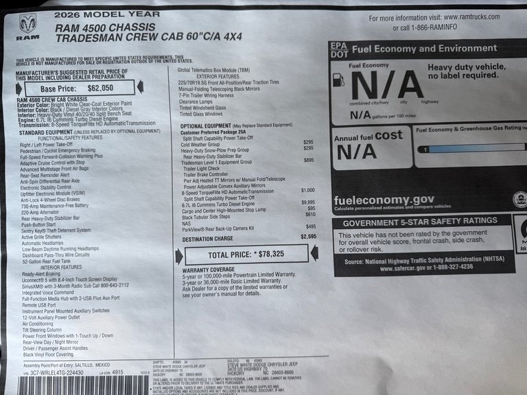 • Style Name: Tradesman Crew 4WD Cummins 9' Skirted Bed 4 Dr