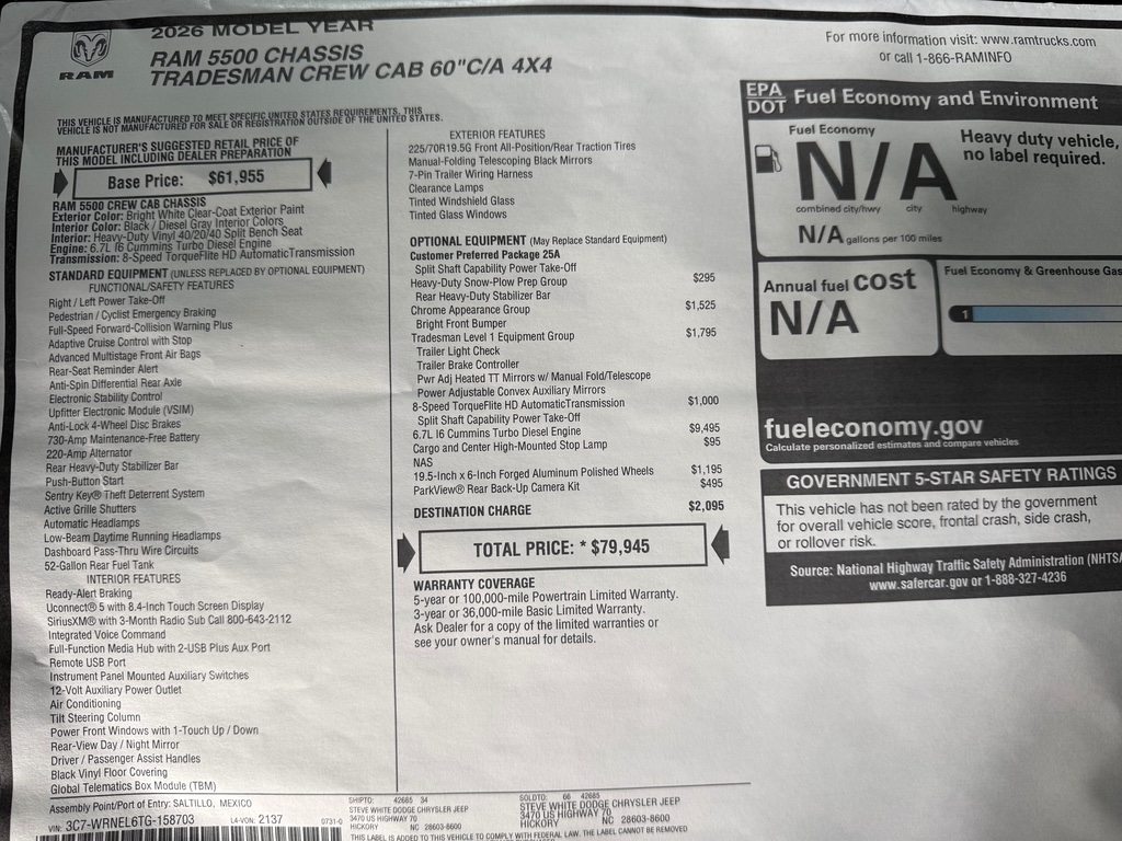 2026 Ram 5500 Chassis Cab Tradesman Crew 4WD 60 CA Cummins 6.7 L