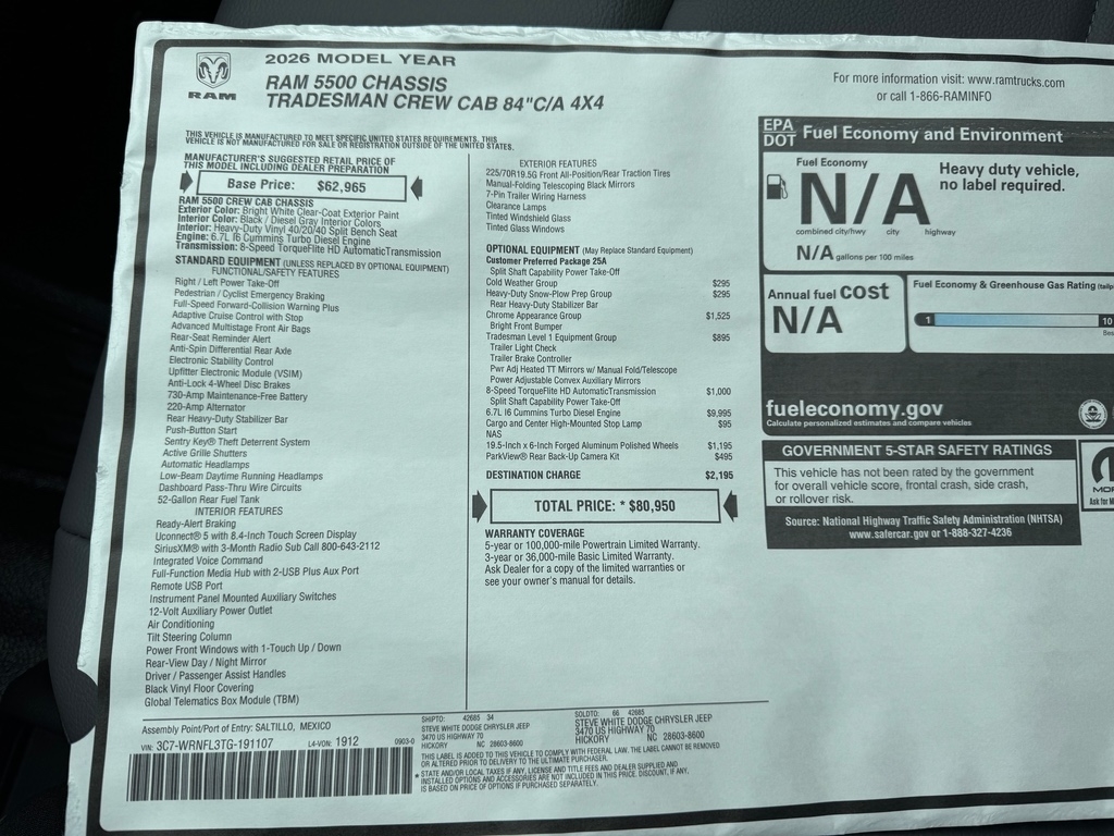 • Style Name: Tradesman Crew 4WD Cummins 11'Combo Bed 4 Dr