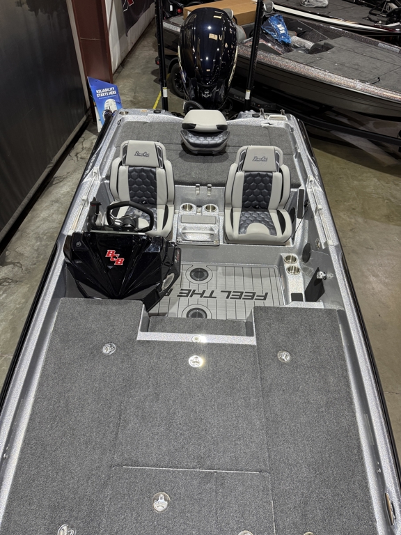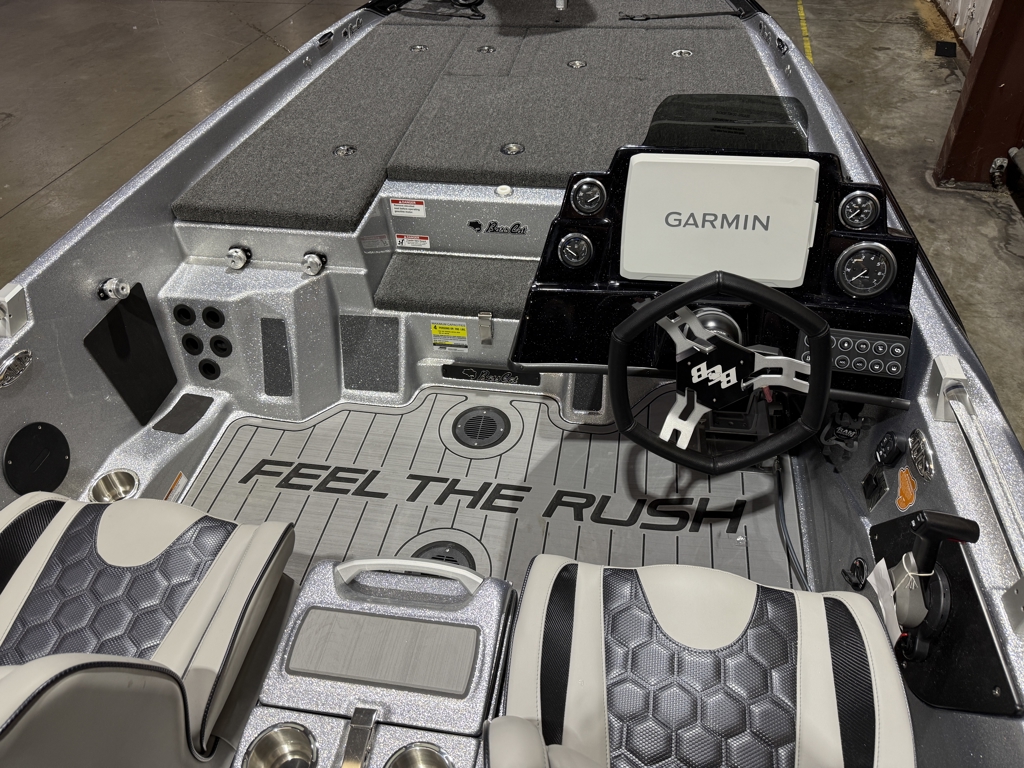Boat Pkg. Includes: Yamaha 250 Upgrade, Single Console, Hot Foot Upgrade, 8" Manual Jack Plate, Removeable Console Receiver Kit Upgrade, External Charge Port Upgrade, Single Blinker Trim, Padded Front Deck Upgrade, Reflex Cockpit Flooring Upgrade, Fiberglass Step Box Upgrade, Hamby Bow Protector Upgrade, Custom Cover, LED Reverse Lights, Wheel Upgrade, Trailer Grab Post Upgrade, Tandem Axle Steel Trailer