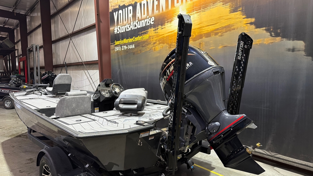 Boat Pkg. Includes: Yamaha 115, Stainless Prop, Hydraulic Jack Plate, Dual 8' Raptors, Vertex Crappie Pkg., Baystar Hydraulic Steering Upgrade, RGB Light Kit, Boarding Ladder Upgrade, Custom Avid Mooring Cover, Metallic Clear Coat Upgrade, Single Axle Steel Trailer with Tie Downs Engine Horsepower: 90 bhp; 67.2 kW