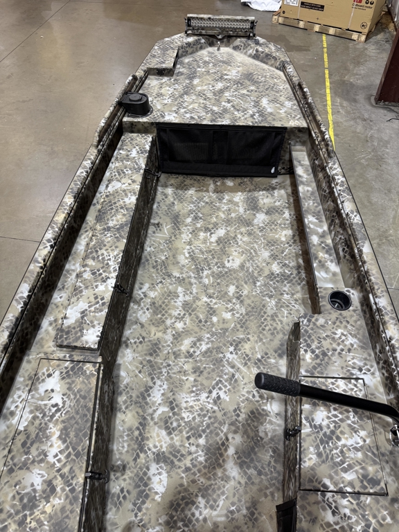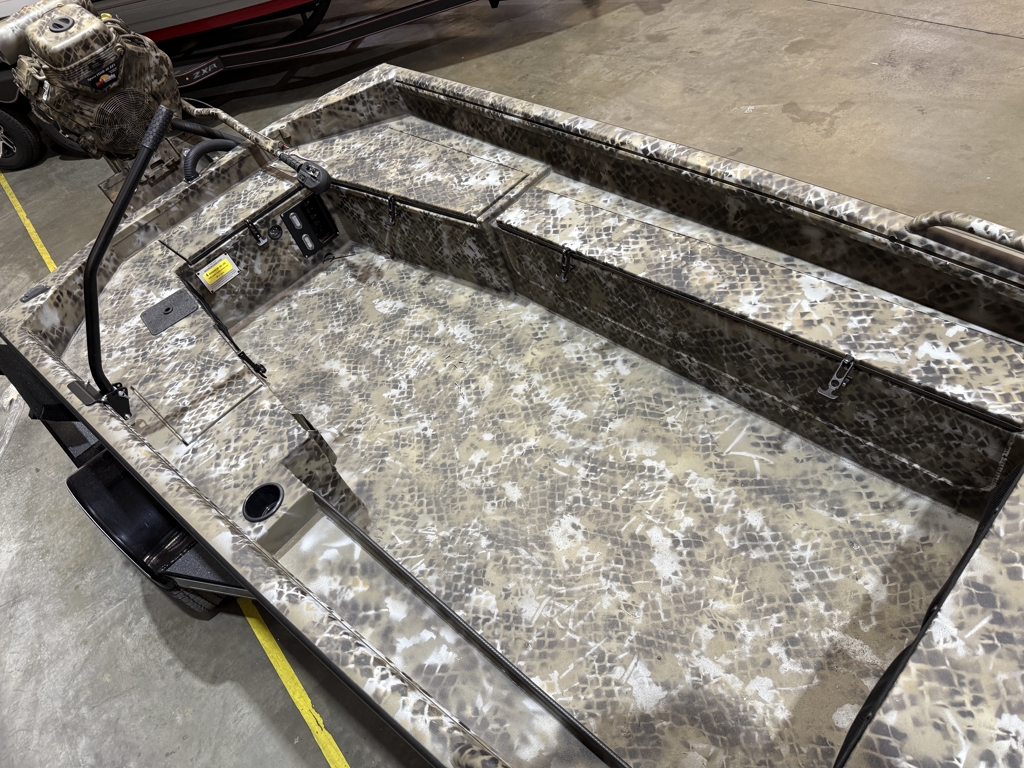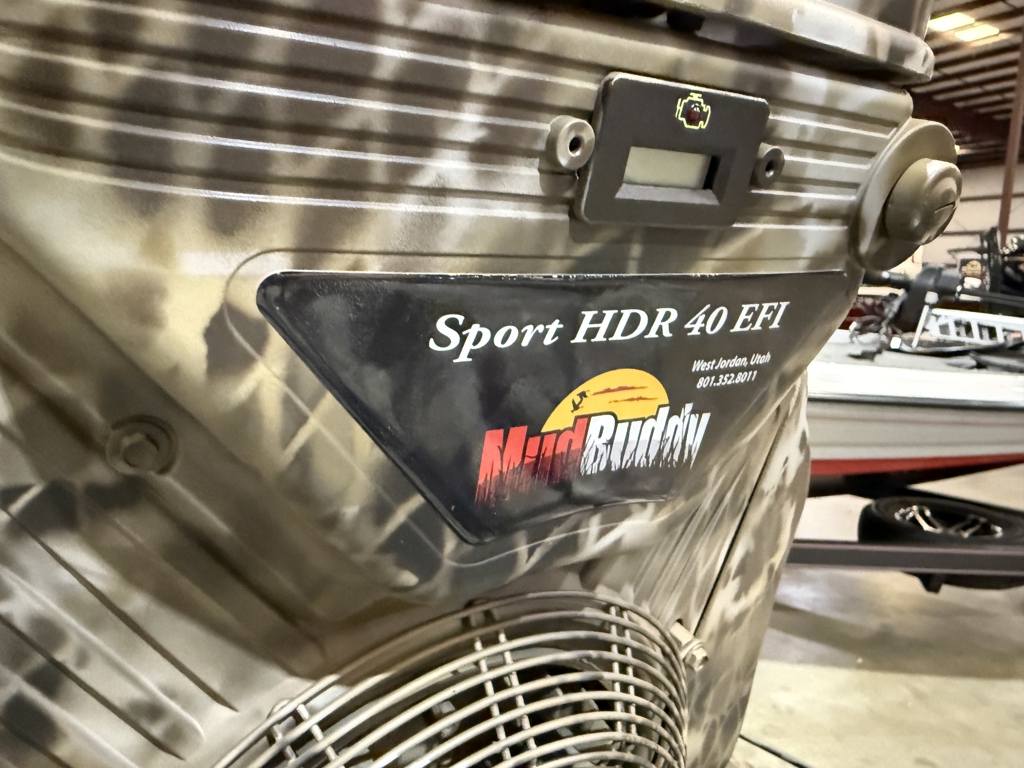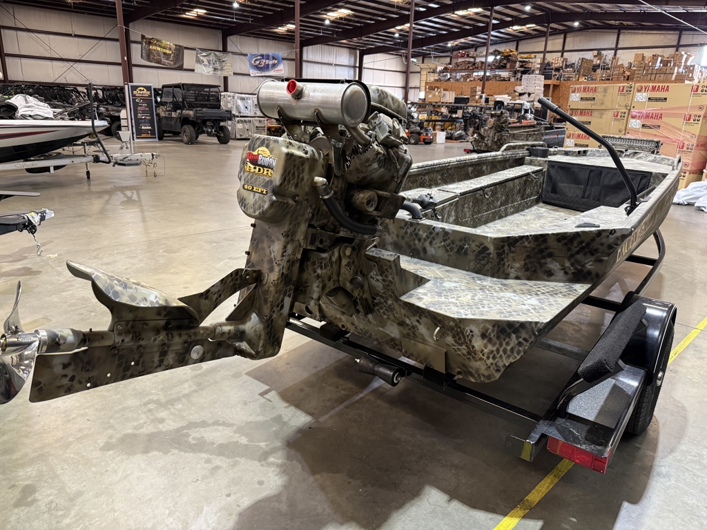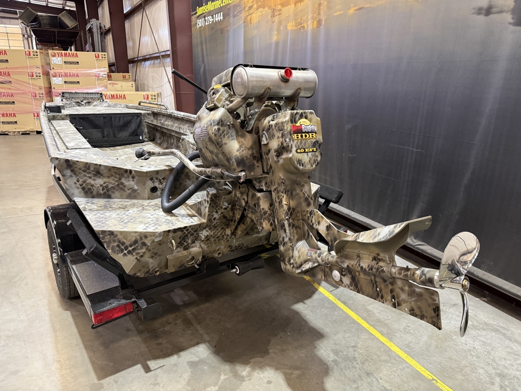 Boat Pkg. Includes: Mud Buddy HDR 40 EFI, Optifade Timber Paint Upgrade, Camo Motor Paint Upgrade, LED Headlight Camo Upgrade, 11 Gal Built-In Gas Tank, Trolling Motor Wiring, Single Axle Steel Trailer
