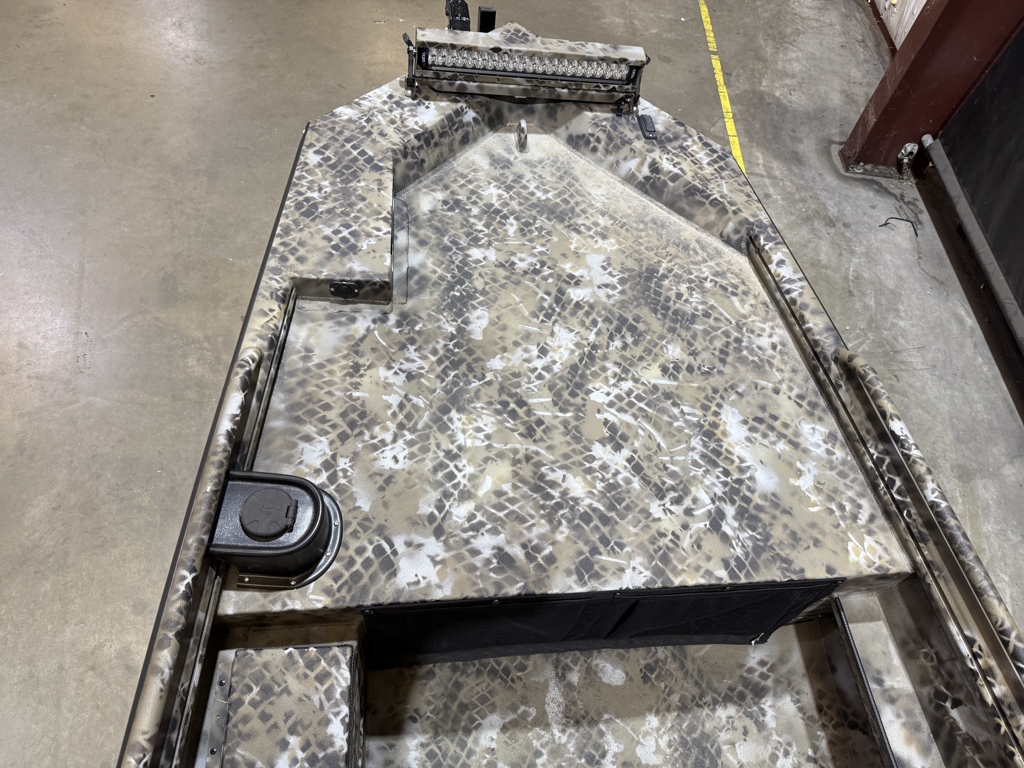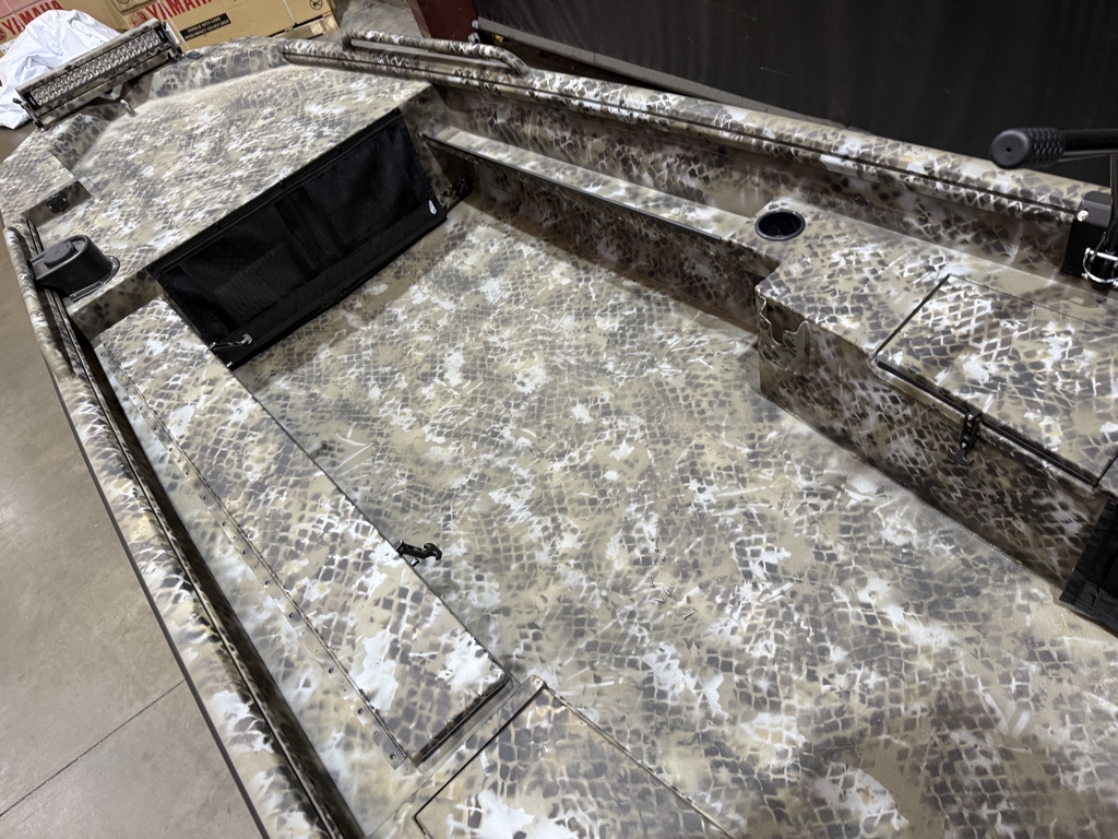 The F4 step-deck allows you to effortlessly climb in-and-out of the boat and serves as a vantage point for your retriever. This innovative step deck introduced by Excel’s owner over 18 years ago with the Mud Buddy MR-18 Mallard with hunt deck, started the shallow water boat step deck revolution and has set the standard for all high-end shallow water duck boats.