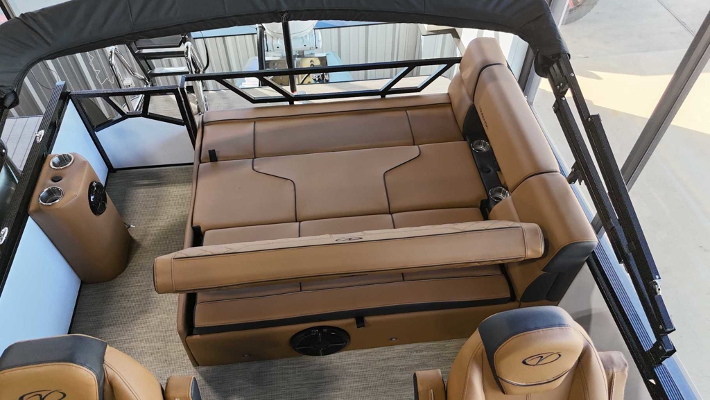 "**the Dealership is not Responsible for any Errors or Omissions Made in the List of Standard Features.**|Aluminum Wheel Upgrade TR-002-VM Standard on Aluminum Trailer|Patented All-Aluminum All-Welded|Interlocking Deck System|Dual Console Floor Plan|Garmin Dual 9"" Flush-Mount Multi-|Function Displays|Digital Switching & Push Button Redundancy|4 Chaise Lounges with Fold Down Armrests|2 Aft Lounges with Integrated Rear-Facing|Seat Cushion Design|Bow, Mid, and Aft USB Charging|Lighted Cup Holders|Portable Armrests w/ Cup Holders|Privacy Room|Rear Entry Gate|Refrigerated Cup Holder at Helm|Removable Table|Ski Tow|Stainless Fold Down Cleats|NEW Easy Step Ladder|Stainless Navigation, Anchor|And Docking Lights|Stainless Prop with Engine Purchase|Stainless Bumper Quick Release Hrdw|And Four Custom Veranda Bumpers|Ratchet Mooring Cover|Tilt-Out Trash Receptacle|Under Console Storage|Rotational Molded Wood-Free Seat Bases|With Water Management|27"" Triple-Toon Performance Pkg|Custom Fiberglass Bow|Custom Aft Caps and Speaker Panels|Hydraulic Tilt Steering|Lifting Strakes|Integrated VLP Performance Motor Pod|Industry-Leading 0.100 Gauge Pontoon Tubes|Center Toon in-Floor Storage|NEW Side Keels|Choice of VX Pewter, Khaki, Coconut Teak and|Distressed Teak Marine Grade Flooring|Dual Battery Switch|Electric Bimini with L.E.D. Bimini Light|NEW Two High Rise Hydraulic Chair Pedestals|Wet Sounds Manufacturer-Tuned Bluetooth USB Streaming|Audio System with Seven Band Digital Equalization|Wet Sounds Swim Platform Audio Remote|Wet Sounds Backlit Cabin Speakers|Wet Sounds 10 "" Subwoofer Bass with Amplifier and RGB Lighting|Wet Sounds 6x9 Rear Swim Platform Area Speakers w/ RGB Glow Lighting|Vertex Designer VX Series Gates|Vertex Designer Fluted Powder Coat Railing|Totally Redesigned Vertex Seating with Elevated Onboard Sound|RGB Underwater Lights|RGB Underdeck Lights|RGB Interior Mood Lighting|Elevated Seadek- Lined Helm Platform with RGB Lighting" Deck Length: 325 in. (8300 mm)