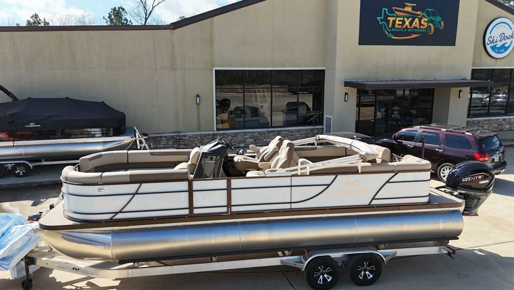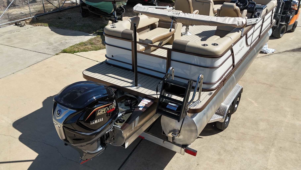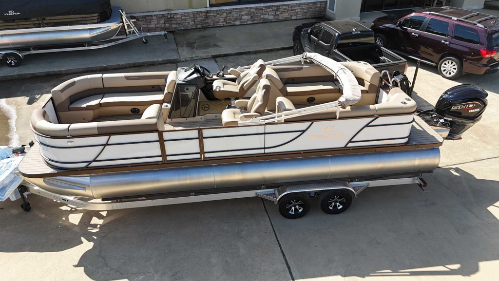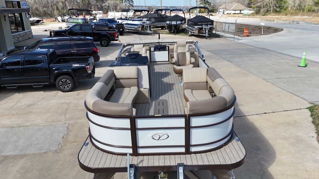 "**the Dealership is not Responsible for any Errors or Omissions Made in the List of Standard Features.**|Aluminum Wheel Upgrade TR-002-VM Standard on Aluminum Trailer|Patented All-Aluminum All-Welded|Interlocking Deck System|NEW Fiberglass Console with Seadek|Lined Elevated Platform|Horn with Stainless Grill|NEW L.E.D. Navigation &|Docking Light Combo|L.E.D. Courtesy Light on Console|Pebble Beach Vinyl Tan Flooring or|Pebble Beach Vinyl Grey Flooring|NEW Privacy Room|Reclining Helm Seat|GPS Speed, Tach, Fuel and Trim Gauges|Stainless Cup Holders|Stainless Quick Release Bimini Hrdw|Stainless Folding Cleats|Stainless Quick Release Bumper Hrdw|Stainless Ladder|Stainless Prop with Engine Purchase|Table Package|Under Console Storage|RGB Underdeck Lights|RGB Underwater Lights|NEWUpgraded Dash Design|27 Triple-Toon Performance Package|Hydraulic Tilt Steering|Lifting Strakes|Integrated Performance Motor Pod|**25 Pontoons on VR20RC and Bi-Toon Models|NEW Blended Latte or Carbon and Dove Grey Upholstery|NEW Bluetooth Audio|NEW Bazooka Subwoofer Base Tube|NEW Phone USB/Usbc Charging Bow and Stern|Dual High-Back Captains Chairs|4 Chaise Lounges with Onboard Cup Holders (22&25)|Port Captains Chair with Cup Holder Tower|Industry-Leading 0.100 Gauge Pontoon Tubes|9 Bimini Top|NEW Powder Coat Rails & Floor Trim with Choice of Color|Rear Entry Gate with Boarding Ladder|Rotational Molded Wood-Free Seat Bases with Water|Management and Storage|NEW Ski Tow Pylon (Ski Tow Bar on Bi-Toons)|Ratchet Mooring Cover|NEW RGB L.E.D. Interior Mood Lighting|NEW RGB Audio Marine Backlit Coaxial Speakers|Four Custom Veranda Bumpers"