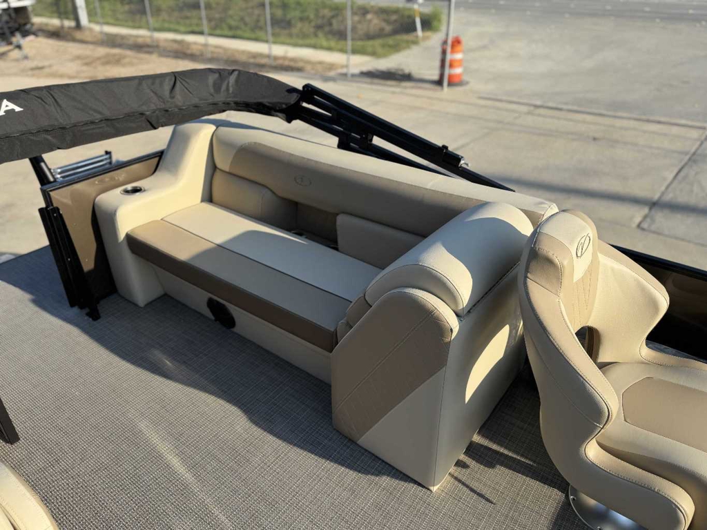 "Yamaha F40LA 40HP|Patented All-Aluminum All-Welded|Interlocking Deck System|NEW Fiberglass Console with Seadek Accents|And Added Toe Kick for Operator Comfort|NEW Dash with Trim Gauge and Footprint for|Upgrade to 7"" Garmin Echo Map MF Display|NEW Under Console Storage Door|Striker 5 Vivid GPS|Horn|Insulated Tote|L.E.D. Navigation & Anchor Lights|L.E.D. Courtesy Light on Console|Willow Tan Vinyl Flooring or|Pebble Beach Vinyl Grey Flooring|Reclining Helm Seat|Speed, Tach, and Fuel Gauges|Stainless 6"" Deck Cleats|Stainless Quick Release Bimini Hrdw|Zero Torque Steering|Full-Length Keels|Full-Length M-Brackets|NEW for 2026 Vista Series Seating|Vibrant Color Panels|Lumbar Cup Holders|NEW Viny-Wrapped Seat Bases|NEW Kicker Blue Tooth Audio|NEW Stainless Boarding Ladder|25"" Triple-Toon Performance Package|Lifting Strakes|Integrated Performance Motor Pod|Dolphin and Vault Grey Upholstery|Port Side Captain's Chair Standard|Wheat & Chestnut|Four-Corner Couch Seating|Black Powder Coat Bimini Frame|Black Bimini Canvas|Black Powder Coat Fence Rails|Rear Entry Gate with Boarding Ladder|Rotational Molded Wood-Free Seat Bases|With Water Management and Storage|Ratchet Mooring Cover|**the Dealership is not Responsible for any Errors or Omissions Made in the List of Standard Features.**"