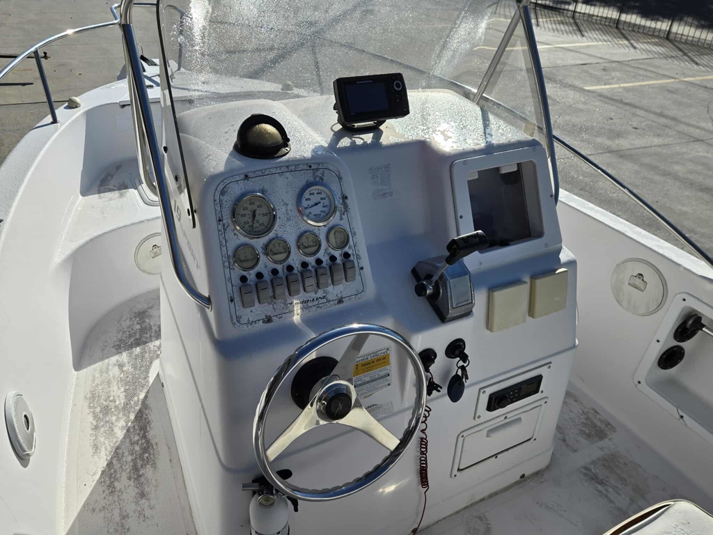 The 2001 Pro-Line 19 Sport is a center console boat designed for versatility, with its main uses being day-cruising and both freshwater and saltwater fishing. This model features a fiberglass deep-vee hull and is powered by a gas outboard engine. Key features typical of the era include a focus on fishing amenities and a robust, relatively simple build with handlaid fiberglass construction.