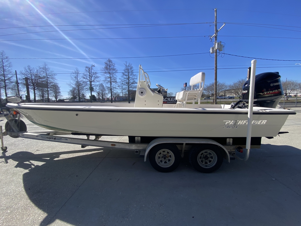 24’ Pathfinder 2400V in great condition and ready to hit the water. Powered by a 2016 Yamaha 250 SHO (465 hours) – recently serviced with new water pump kit & lower unit damper seal. Runs strong and reliable.