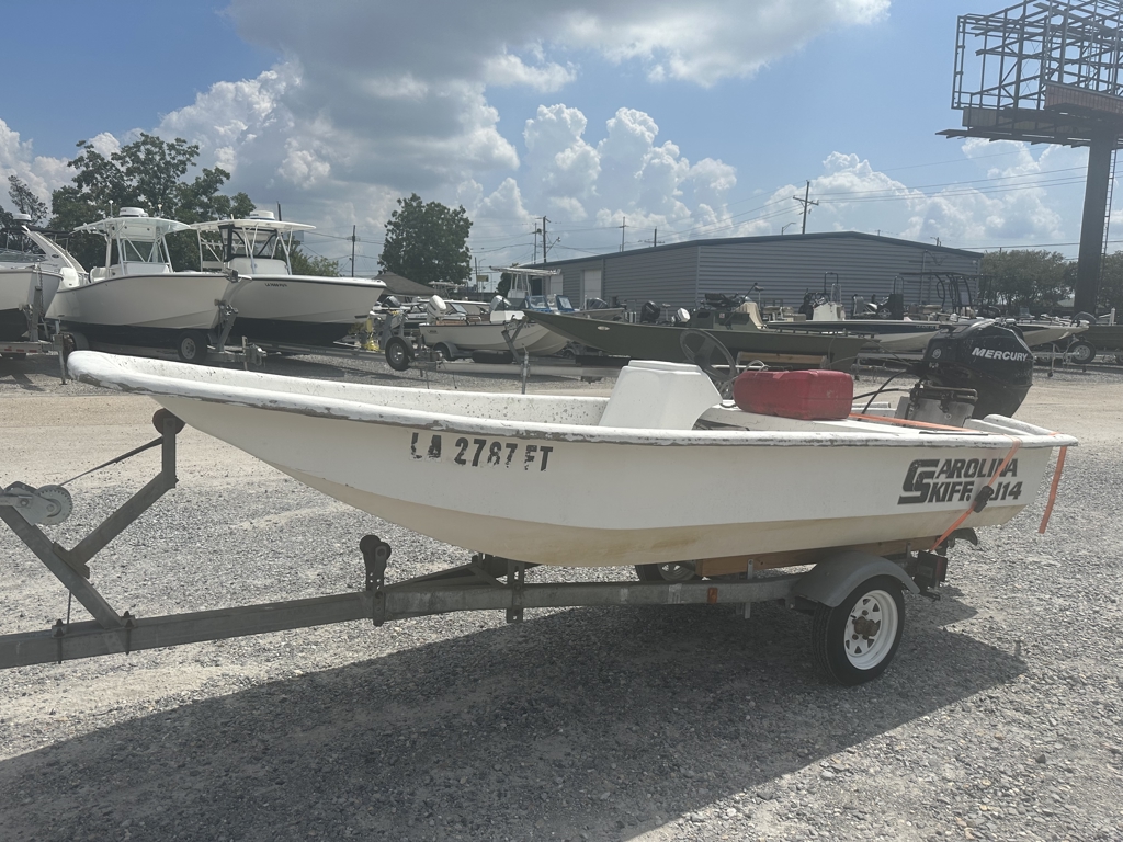 Up for grabs is a rugged little boat built for work and play: a 2007 Carolina Skiff J14, powered by a reliable 25 HP four-stroke Mercury outboard. Whether you’re fishing shallow marshes, cruising around lakes, or just need a tough little skiff that won’t break the bank, this one’s ready to go.