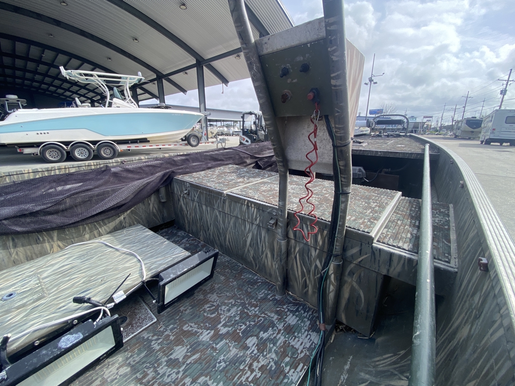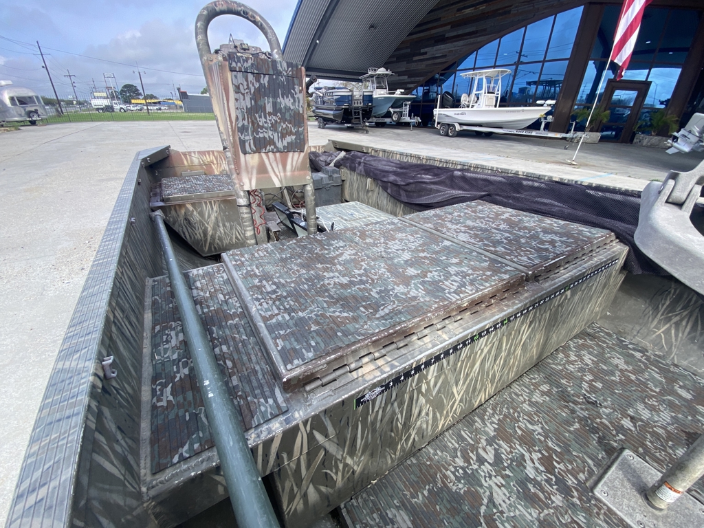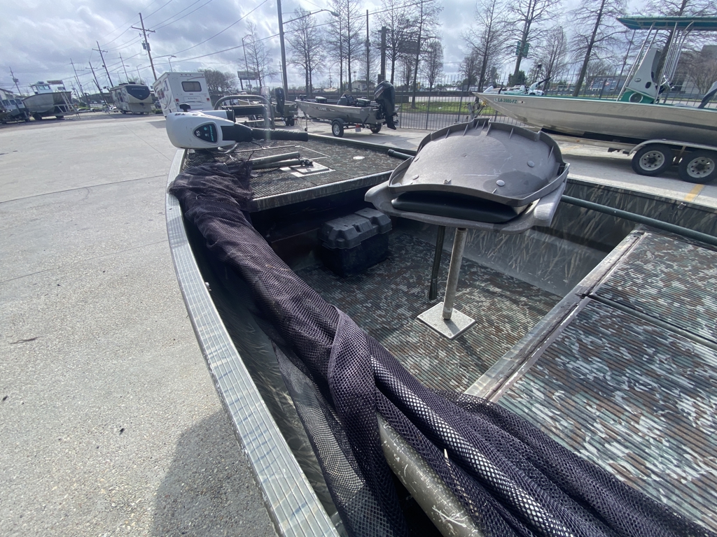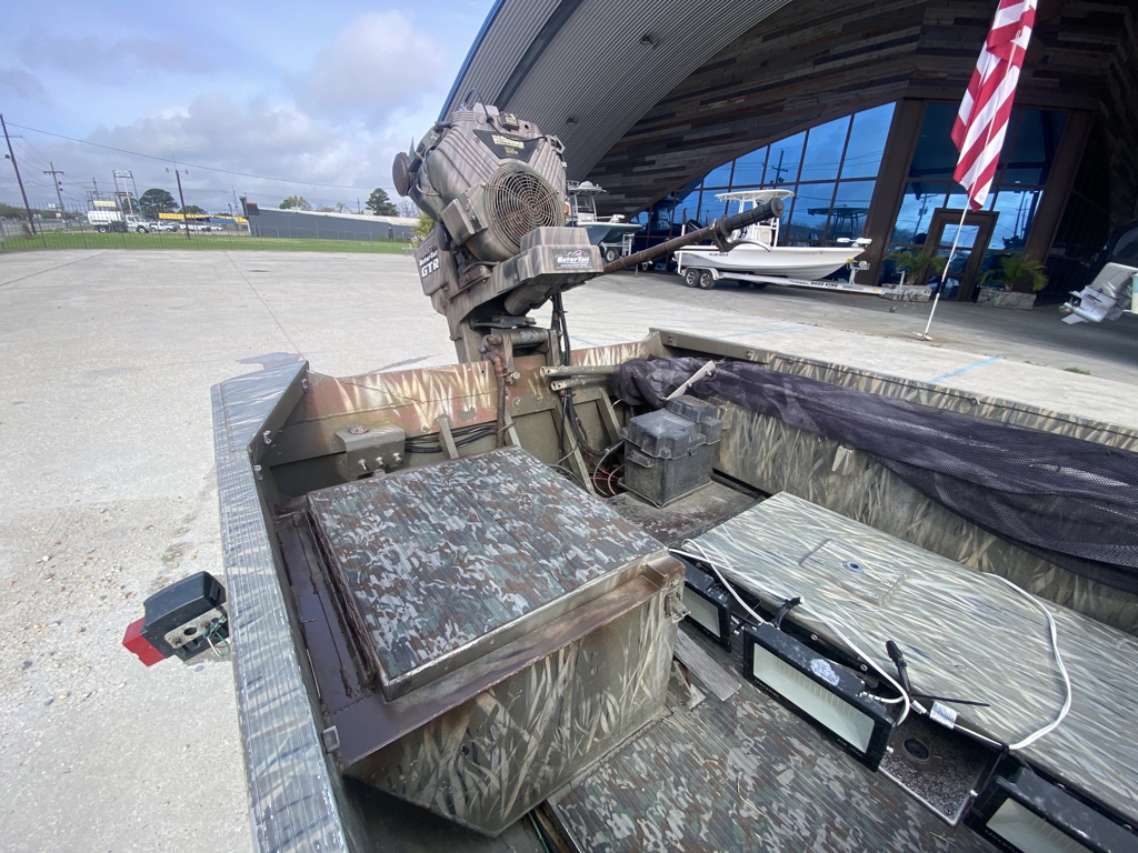 Great setup for duck hunting, bowfishing, or running shallow marsh and ponds. Gator Trax boats have a reputation for being some of the toughest aluminum hulls out there.