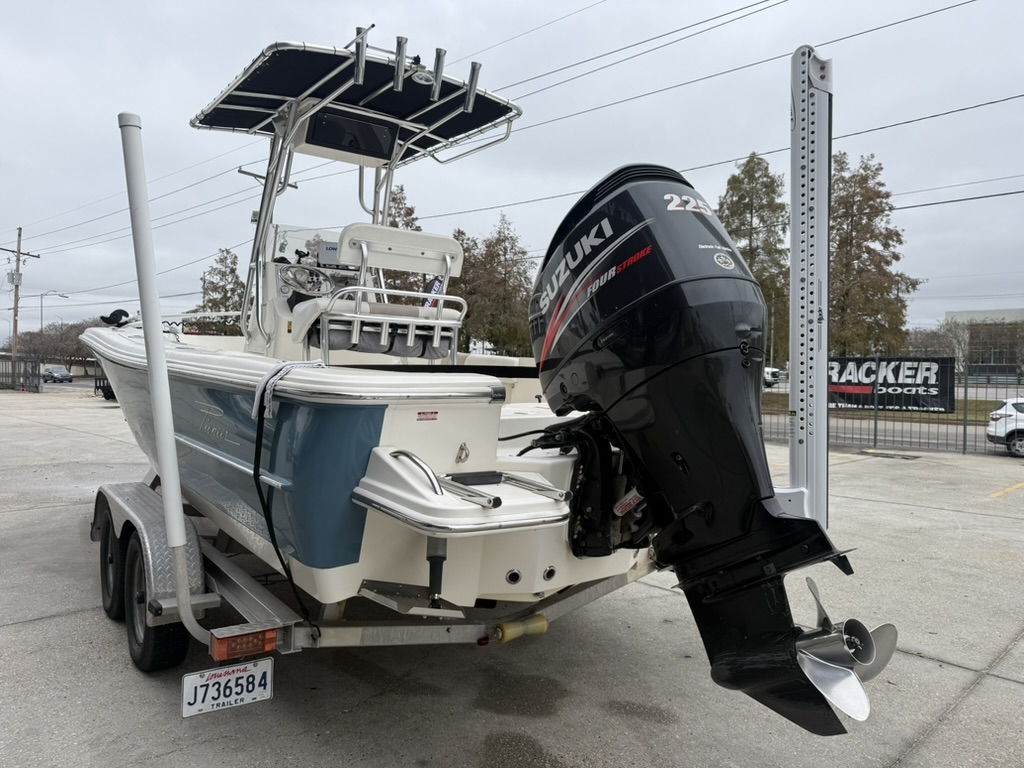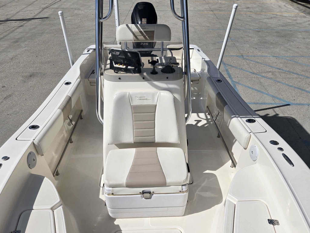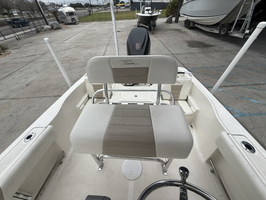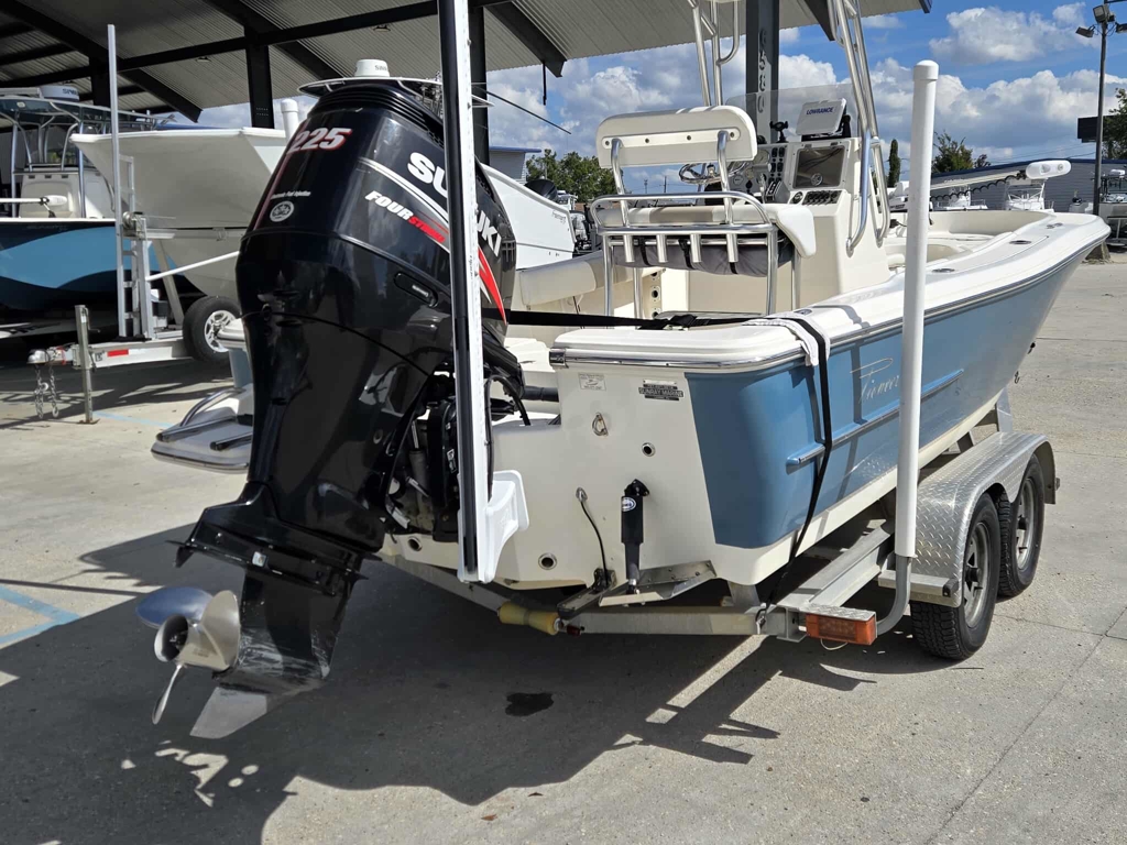The 2010 Pioneer 220 Bay Sport is a hybrid center console boat designed for versatile use in shallow bays, rivers, and coastal waters. Key features include a fiberglass hull, a foam-filled unsinkable design, a shallow draft of about 13 inches, and seating for up to eight people. It is well-equipped for fishing with insulated fish boxes, livewells, and ample rod storage, while also offering comfortable seating and amenities for family recreation.