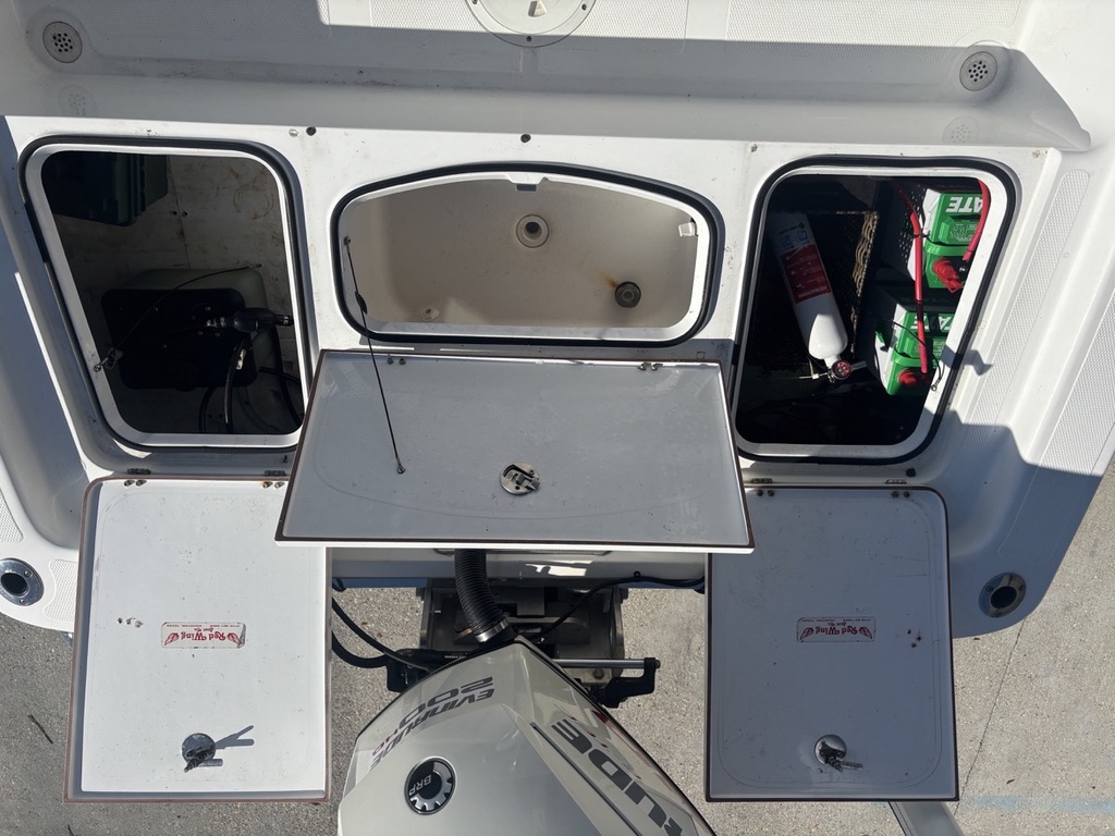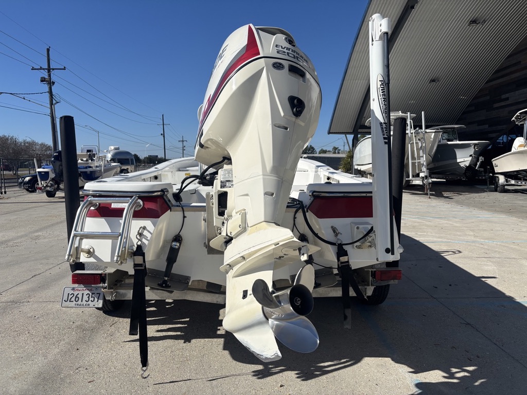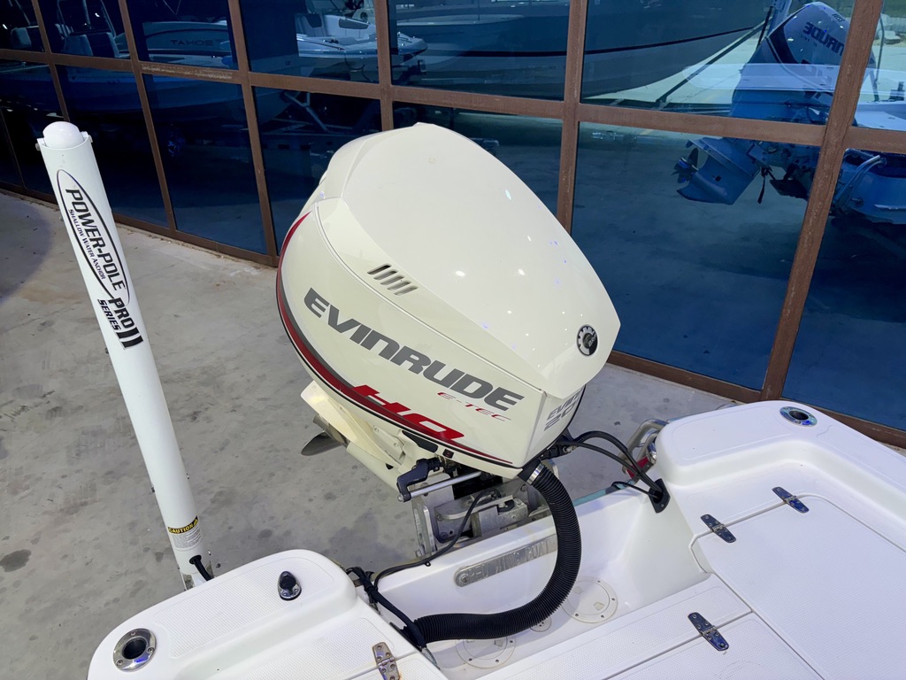 Hung on the transom is the perfectly matched Evinrude 200hp E-TEC motor. This isn't your grandpa's outboard!