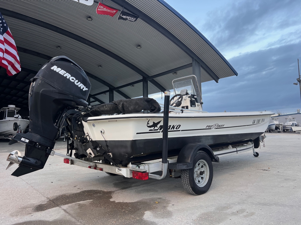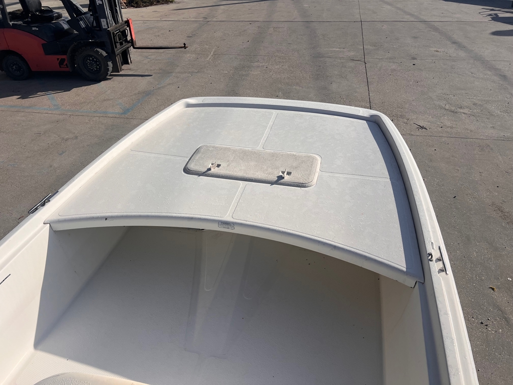 The Pro Skiff 17 CC is a hardcore fishing machine with refined manners for all-day comfort. Five rod holders, a bow anchor stow, huge lockable in-deck storage box, and twin baitwell/livewells let you carry everything you need for a day of casting or cruising. An optional rugged trolling motor and fishfinding electronics lead the way to the day’s catch, while the standard FourStroke Mercury® outboard delivers reliable power in all conditions. Rounding out this capable inshore performer is a saltwater-ready trailer that’s tailor-made for this hull that delivers safe and solid on-road performance mile after mile.