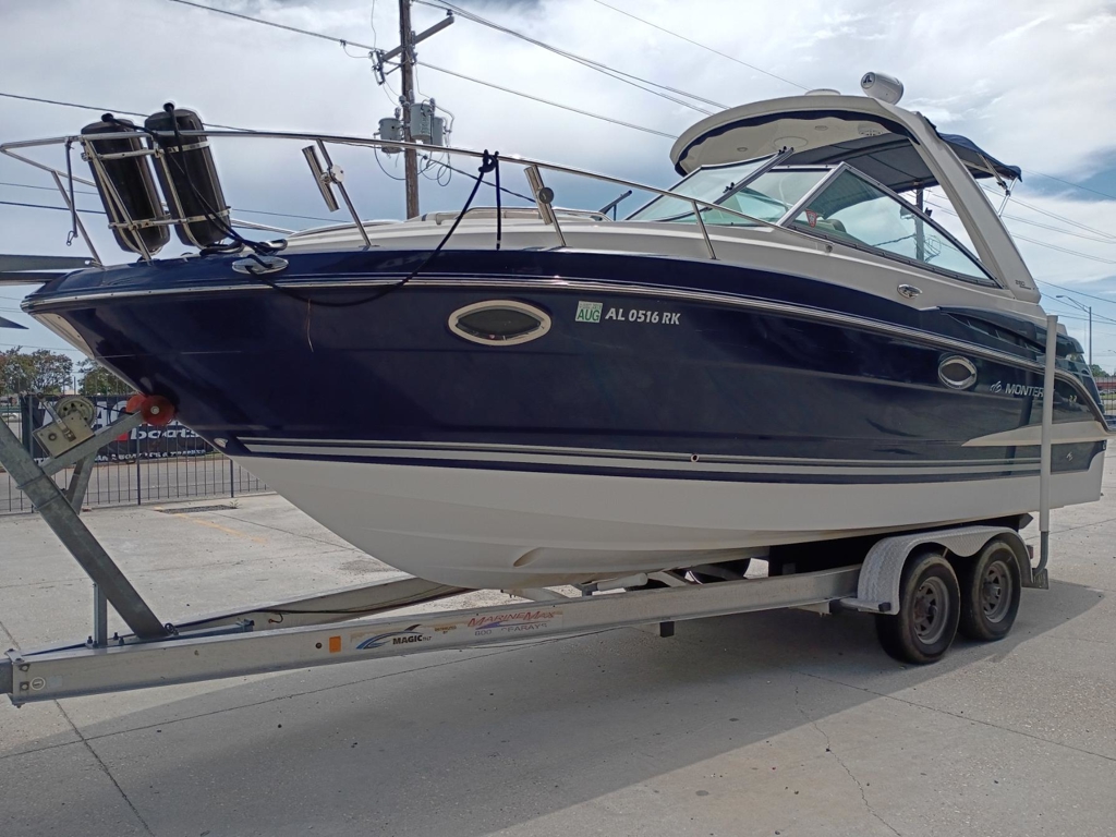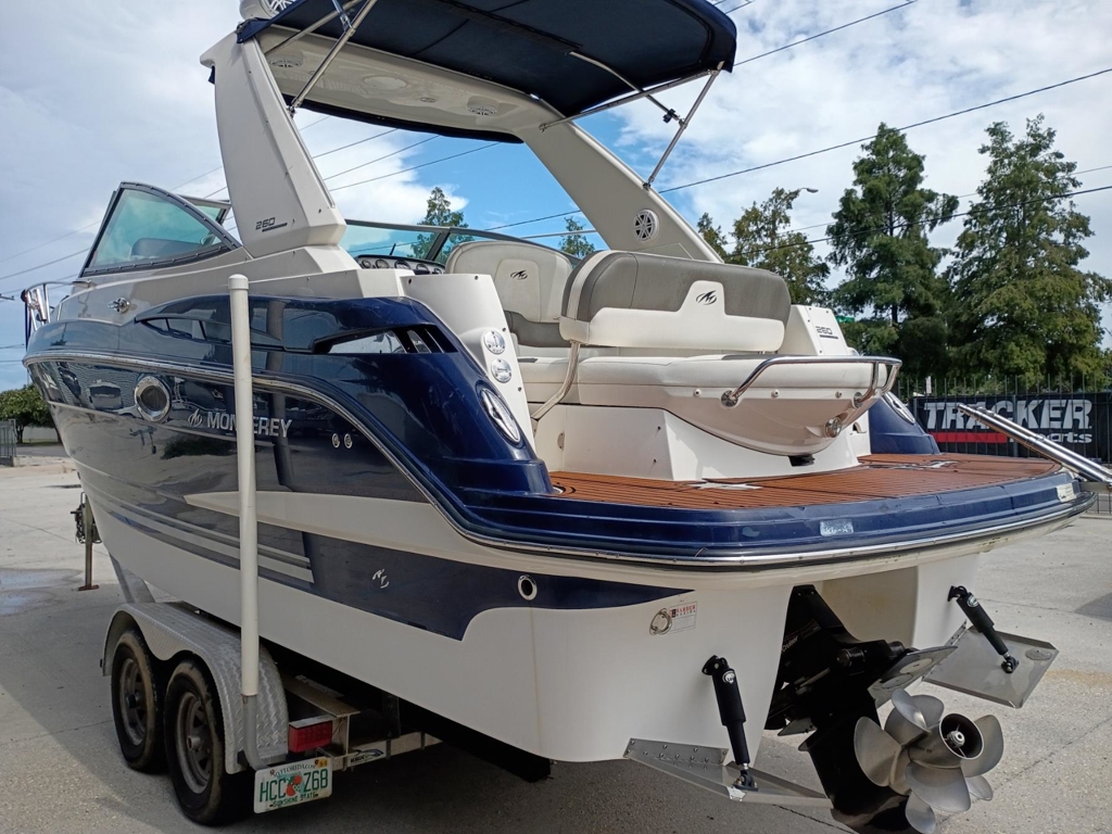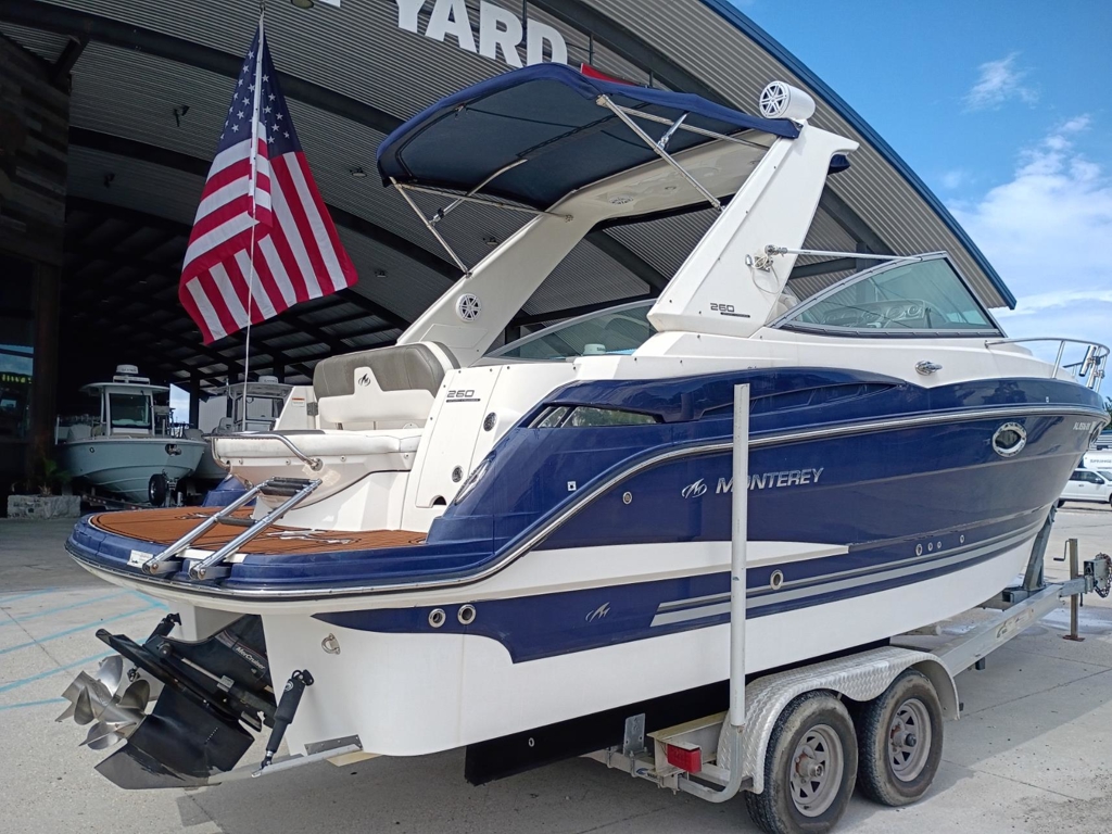 Contact Seth for more info! (504) 295-2787A 2013 Monterey 260 Sport Yacht, also known as the 260 SCR, is a 26-foot power boat designed for cruising and overnight stays. It features a spacious cabin with sleeping accommodations for multiple people, a galley, and a head compartment. The boat also includes a large cockpit area with seating and a wet bar, making it suitable for entertaining. It's known for its blend of style and functionality, offering a comfortable and enjoyable experience on the water.