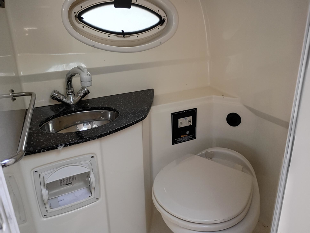 Head: Equipped with a pump-out toilet, sink, and granite-like countertop, with a flexible hose for showering.