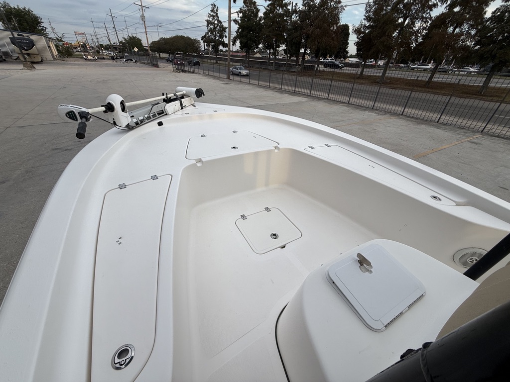 The 2200 Carolina Bay has the same large casting deck and big bow flair as the 2000 and has cast net storage in the floor, fold up jump seats and 7 foot rod storage. The 2200 is a impressive riding bay boat that can handle big water.