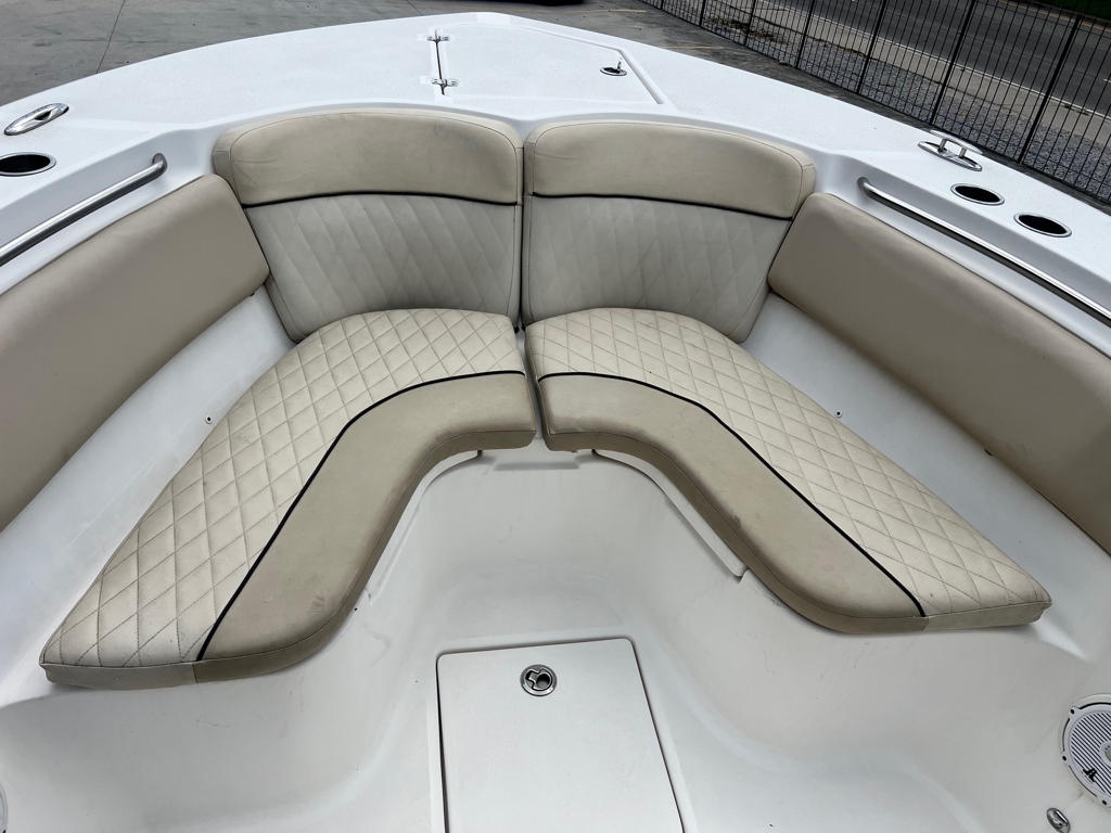 Standard Seating: Fiberglass helm pod with deluxe bucket seats, 65-qt cooler, and rigging station