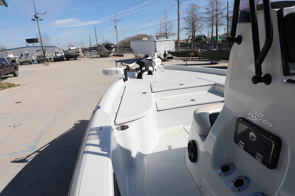 The 2019 Blue Wave 2200 Pure Bay is a 21-foot 4-inch, high-performance center console bay boat, often featuring a Merc 225 HP engine, ideal for both shallow backwater and nearshore fishing. It boasts a 1,700 lb weight, 102-inch beam, ~55-60 gal fuel capacity, and 12-inch draft, featuring a modified-V hull for stability.