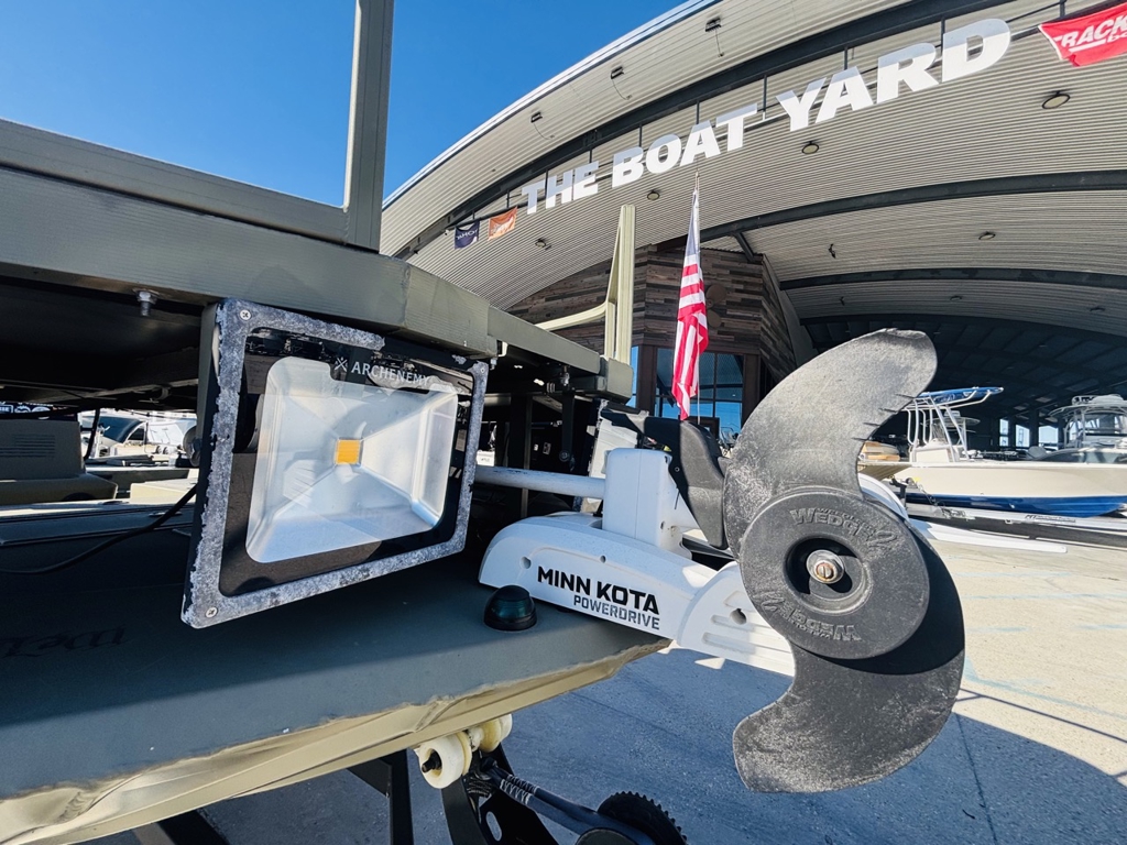 • Night Vision: Custom bow fish-and-hunt deck featuring 8 Archenemy Lights. It turns night into day for bowfishing or navigating treacherous timber.