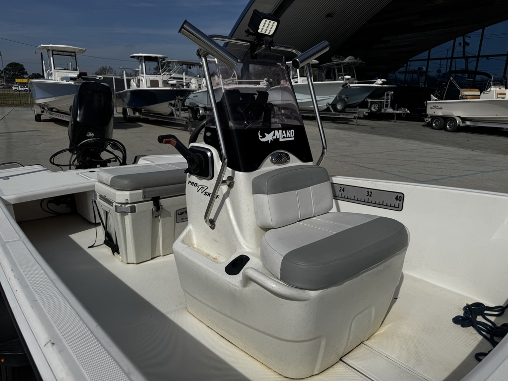 This 2019 Mako Pro Skiff 17CC is the perfect inshore and flats boat. Powered by a reliable Mercury 60HP FourStroke, it offers smooth performance, shallow draft capability, and excellent fuel efficiency. Features include spacious bow and stern casting decks, center console with windshield and grab rail, livewell, rod storage, Garmin fishfinder/chartplotter, and trailer included. Lightweight, easy to tow, and ready for your next fishing trip or family cruise. Max HP: 75 hp