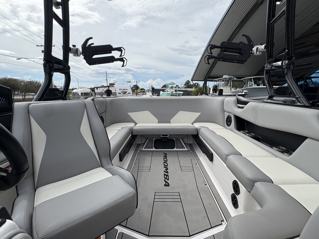 This Moomba is designed with a spacious layout, premium seating, and intuitive controls that keep the captain in command while guests enjoy a comfortable ride. With its versatile surf system and ballast setup, you can easily dial in the perfect wake for riders of all skill levels.