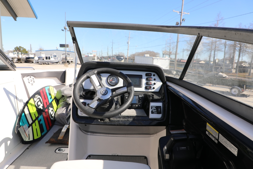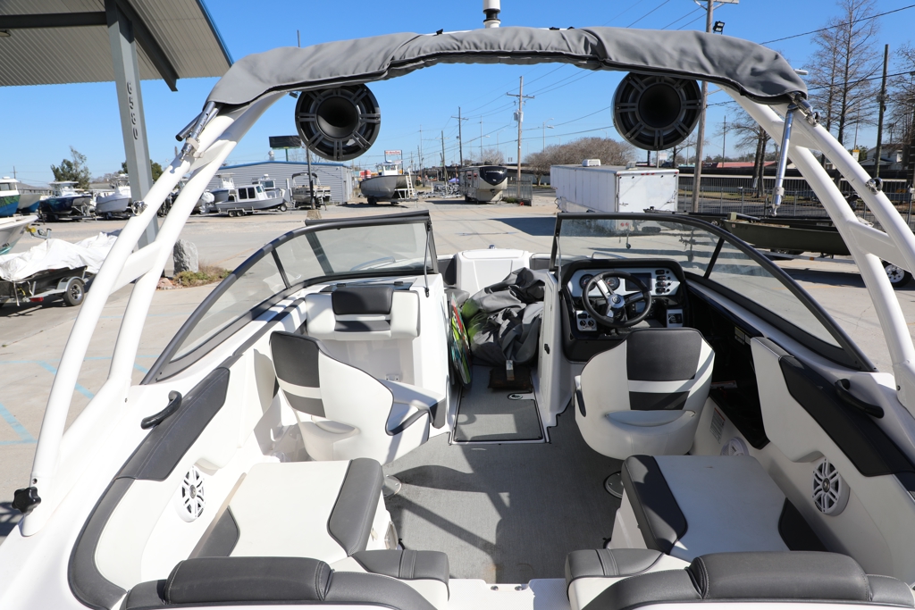 Interior: Snap-in marine-grade woven floor mat, adjustable captain's chair with flip-up bolster, and hinged seat cushions.