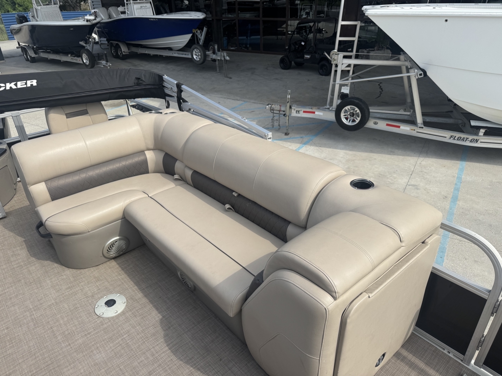 Get ready to enjoy laid-back days on the water with the Sun Tracker 20 Fishin’ Barge DLX — the perfect blend of comfort, space, and fishing functionality!