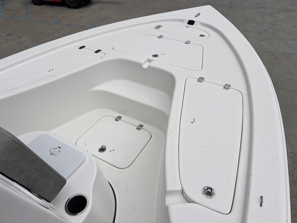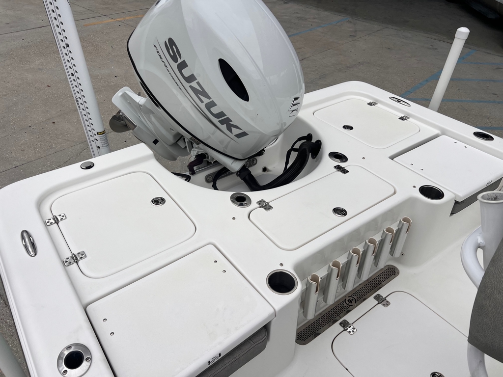 Additional Features: Raw water washdown, half swim platform with telescoping ladder, lockable rod storage, and multiple livewells.