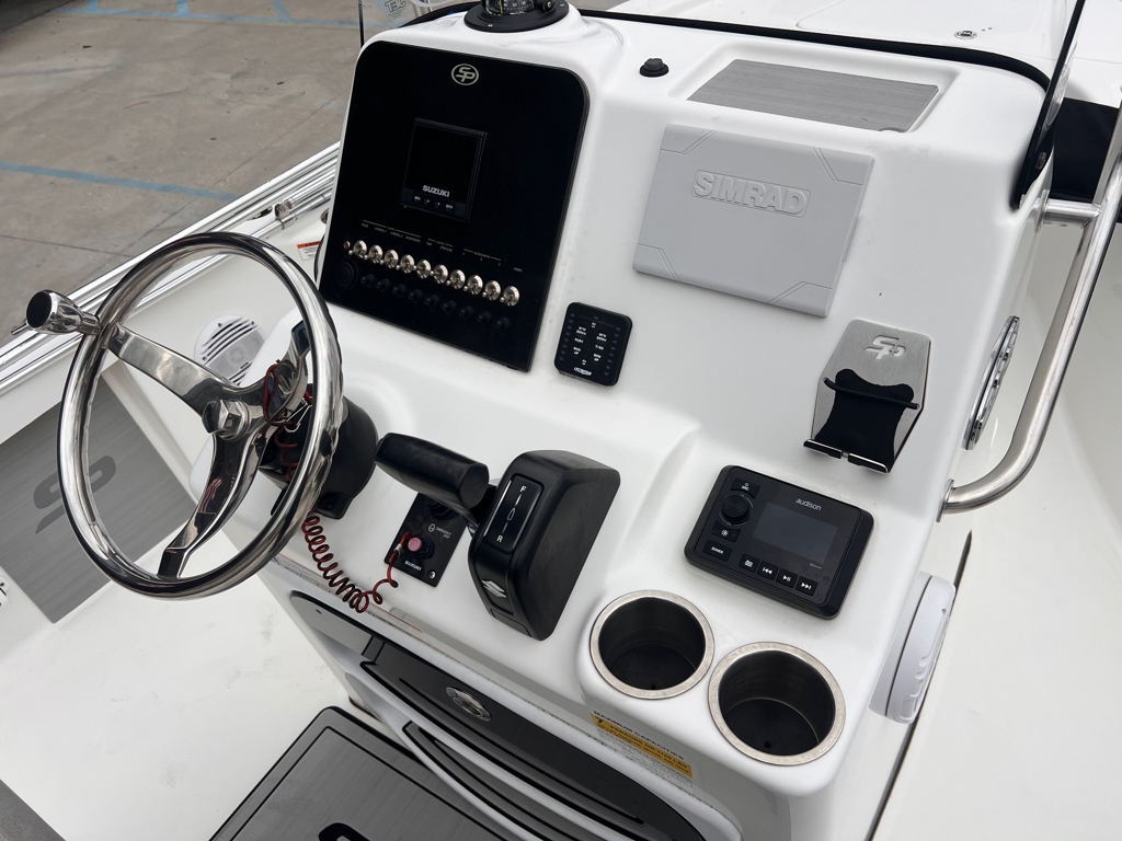 Standard Features: Simrad touchscreen electronics, Sea Star power assist tilt hydraulic steering