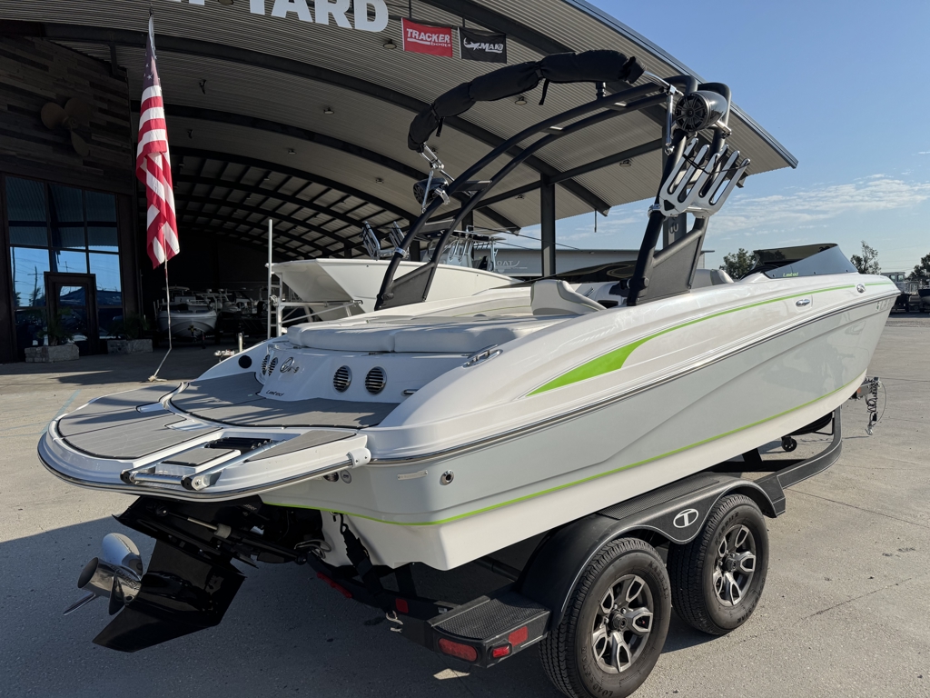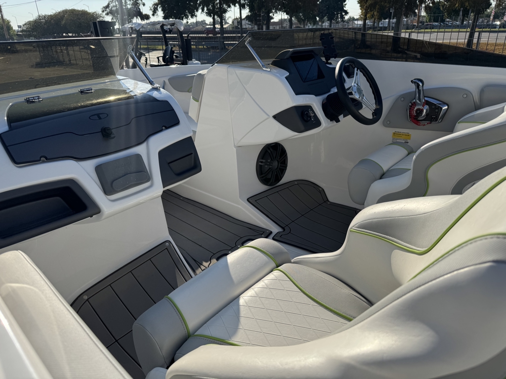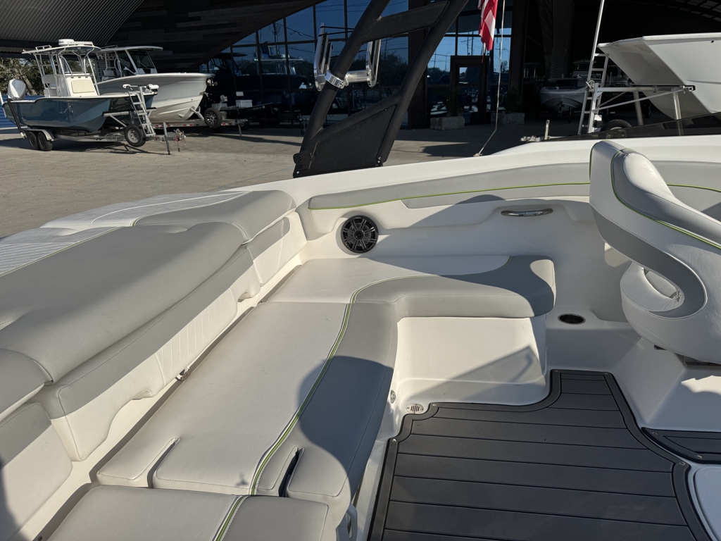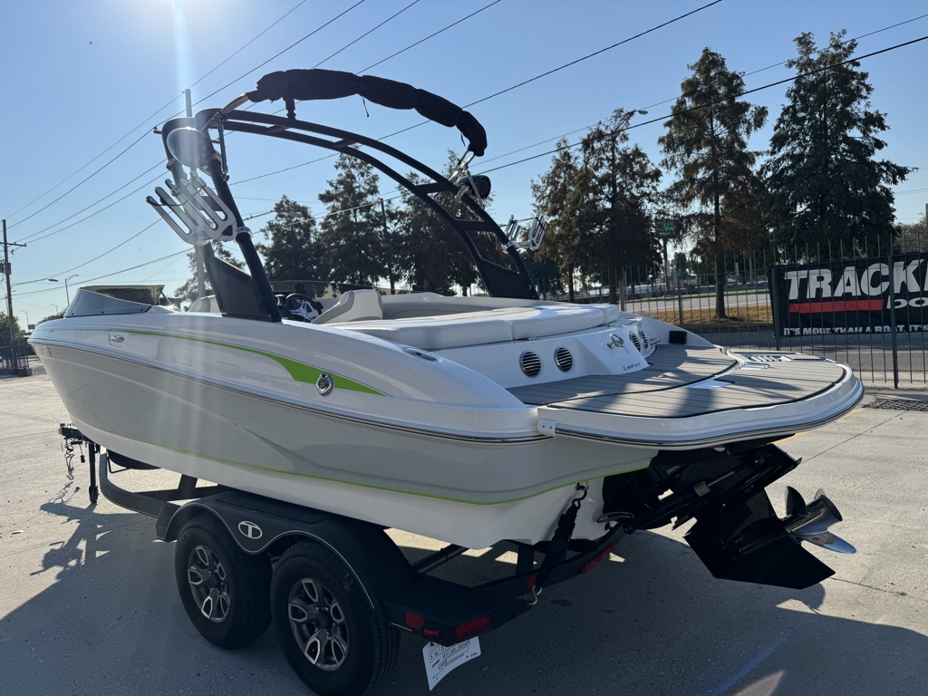 A sleek, versatile deck boat perfect for family fun, fishing, and water sports. This 21' boat offers a smooth, responsive ride. It features spacious seating for up to 11 passengers, plush marine-grade upholstery, and a removable table for on-the-water dining. The full-width swim platform with ladder and ski tow ring makes it ideal for water activities, while the bimini top provides shade on sunny days. Includes a custom-matched trailer with brakes and swing-away tongue. Clean title, freshwater use only – turn-key ready for the water!