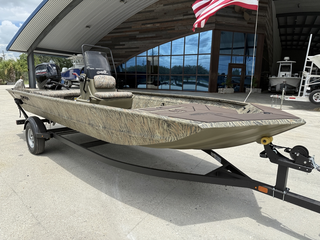 Venture into the unknown with the TRACKER® GRIZZLY® 1860 CC, a robust and versatile all-purpose jon boat designed to conquer various water environments, from rivers to lakes to bays. With its durable, all-welded construction, this boat is equipped to handle any adventure you throw its way. The innovative center-console design not only provides 360° fishability but also offers enhanced visibility for the driver, crucial for navigating through shallow waters cluttered with stumps and rocks. Whether you're casting a line or cruising the waters, the decks and floors of the 1860 CC are equipped with our textured SURE TREAD™ coating, ensuring a secure and non-skid surface for your safety and comfort. The unitized stringer, transom, and Mod V hull construction of this boat guarantee a solid and stable ride, delivering an experience that is both smooth and dry. Finished with our exclusive Forest Green powder-coat finish, the GRIZZLY 1860 CC not only looks sleek but also offers superior protection against corrosion and wear. For those looking to personalize their vessel further, optional TrueTimber patterns and a Marine Mat kit are available, allowing you to tailor your boat to your preferences and style. With the added assurance of the TRACKER PROMISE, featuring the best factory warranty in aluminum boats, the GRIZZLY 1860 CC is a reliable and dependable choice for all your boating adventures.