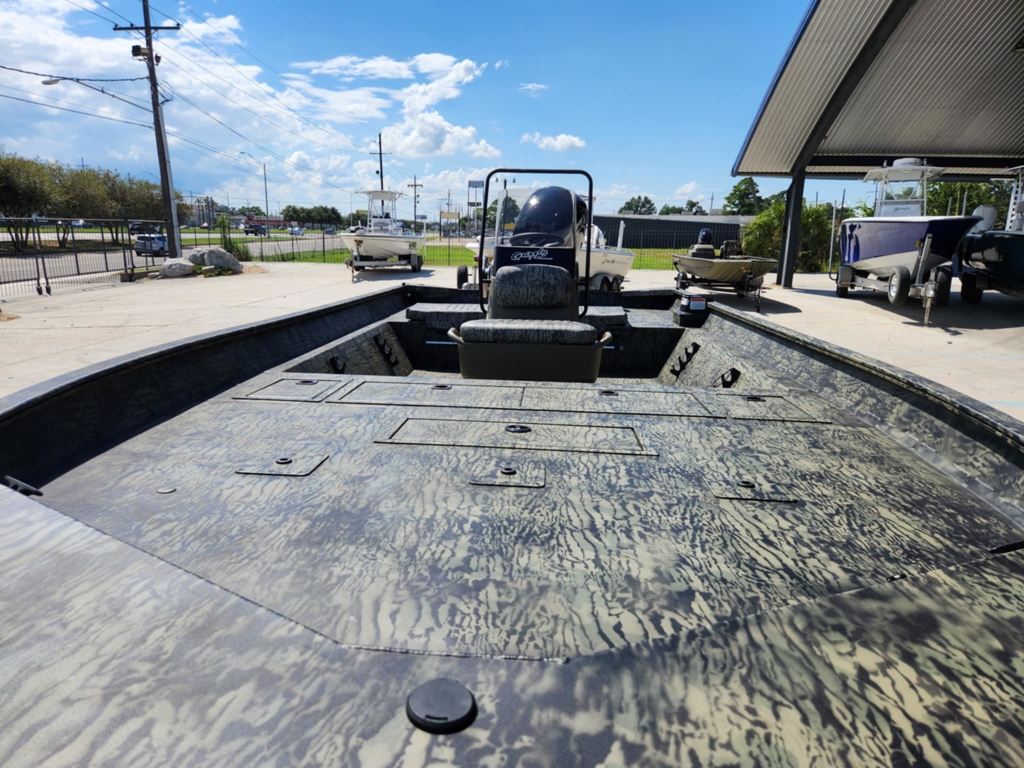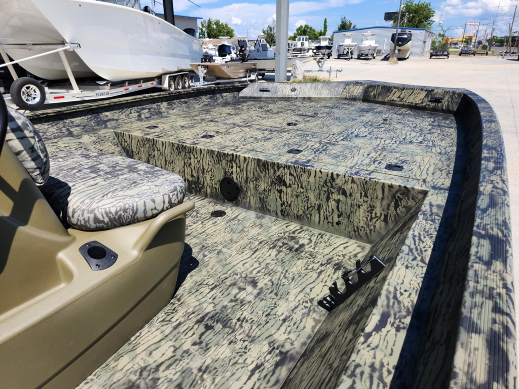 Call Hunter to schedule a showing! (504) 615-7924Unleash the power of the TRACKER® GRIZZLY® 2072 CC, a formidable all-welded aluminum jon boat designed to tackle a multitude of tasks, whether it's inland or inshore fishing, hunting, or utility work. Boasting a massive build, this boat is ready to conquer any challenge you throw its way. The innovative center-console design not only offers 360° fishability but also provides the driver with enhanced visibility when navigating through narrow and shallow waters, ensuring a smooth and controlled ride. With the capability to be powered by up to 150 HP, the GRIZZLY 2072 CC delivers unmatched power and range for your adventures on the water. Constructed with 100% aluminum, featuring a .100 hull and .190 floor, this boat guarantees exceptional durability and longevity. The hull, stringer, transom, and decks are meticulously all-welded to create a rock-solid, unitized structure that can withstand the harshest conditions with ease. Backed by the reliable TRACKER PROMISE, offering the best factory warranty in aluminum boats, the GRIZZLY 2072 CC provides you with peace of mind and confidence in your investment. For those looking to personalize their vessel, optional TrueTimber camo patterns and a MarineMat kit are available, allowing you to tailor your boat to suit your preferences and style. Experience unparalleled versatility, power, and durability with the TRACKER GRIZZLY 2072 CC, your ultimate companion for a wide range of water activities.