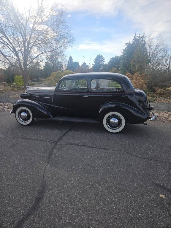 This 1937 Chevrolet Master Deluxe Business Coupe is an exceptionally clean and original classic, previously displayed in a museum and preserved with impressive care. It shows 65,340 original miles and still carries a stunning 30-year-old black exterior finish with a red pinstripe, presenting a straight, gorgeous body. The car retains its original 3-speed transmission and rebuilt knee-action shocks designed for dirt-road driving. Extensive updates include all-new wiring, a 12-volt conversion, recovered seats, and well-preserved original headliner and door panels. The roll-up rear window shade still works, and the original heater option remains intact. Doors and windows open smoothly, and the car runs and drives beautifully—an outstanding example of a pre-war Chevrolet kept remarkably true to its heritage. Located in Lakewood, CO 80232 For more information, please call 833-265-6113 and mention ID 90734
