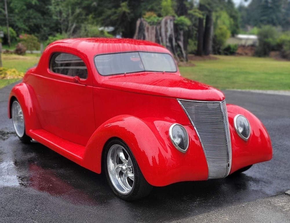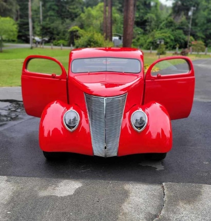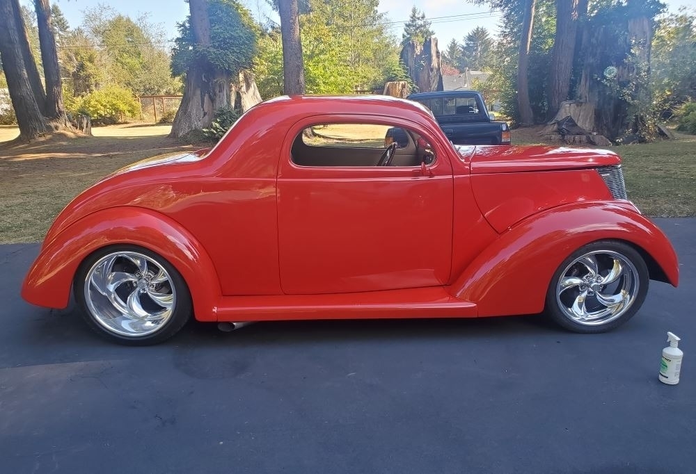 This 1937 Ford Roadster is a stunning example of classic automotive craftsmanship, blending vintage style with modern performance. Its sleek, custom body lines and beautifully finished paint highlight the iconic curves of the '37 Ford design. Under the hood, it features a powerful V8 engine paired with a manual transmission, delivering a smooth and exhilarating driving experience. The interior is tastefully finished with leather upholstery, classic gauges, and modern conveniences, providing both comfort and style. With its polished chrome accents, custom wheels, and flawless attention to detail, this roadster stands out at car shows and on the open road. Whether you're a collector or simply looking for a classic car to enjoy, this 1937 Ford Roadster is a head-turner that's ready to cruise!