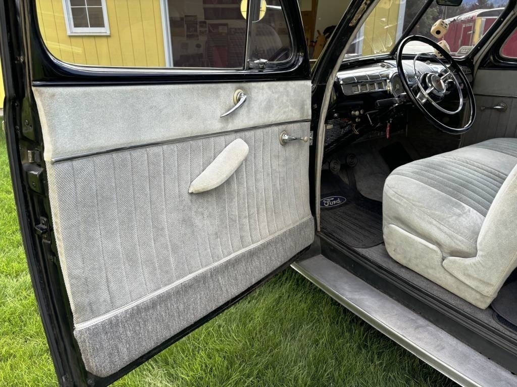 This 1948 Ford Coupe is a stunning older restoration and mild custom, owned by the same family for 30 years and always kept in a climate-controlled shop. It’s powered by a rebuilt 100HP, 239 cubic inch flathead V-8 engine paired with a 3-speed manual transmission, both of which have been rebuilt and run smoothly. The car retains its original drivetrain and has been converted to a reliable 12-volt system with a Delco alternator. With less than 500 miles driven since key components were rebuilt, this classic boasts new Coker Classic wide whitewall radial tires installed on 15" rims, a fully reupholstered cloth interior, and no known rust. Recent maintenance includes a transmission rebuild (Aug. '13), engine rebuild with new starter and water pumps (Jan. '14), brake rebuild (Dec. '15), and re-packing of all wheel bearings (Jan. '23). Receipts for all the work are on hand, and this beautifully preserved Coupe is ready for its next adventure. Odometer shows 4,800 miles, though the total mileage is unknown. A true collector’s piece!