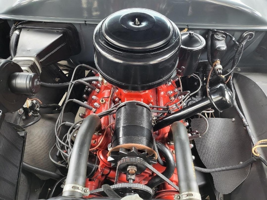 The exterior of the car is finished in a classic grey paint, which has been beautifully restored and maintained, giving it a timeless, sleek look that draws attention wherever it goes. The body lines are clean and sharp, showcasing the attention to detail put into its restoration. The interior has also been carefully preserved and restored, reflecting the period-correct style while maintaining modern comfort for a pleasant driving experience.