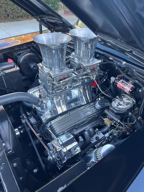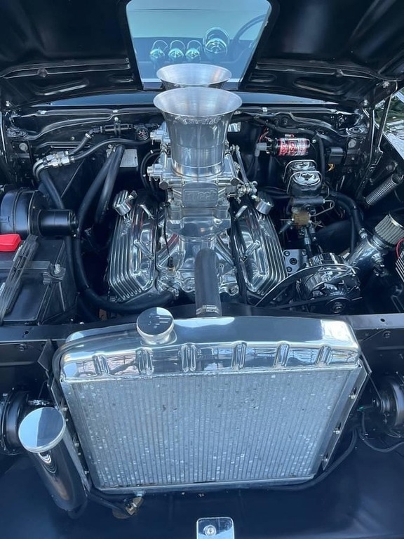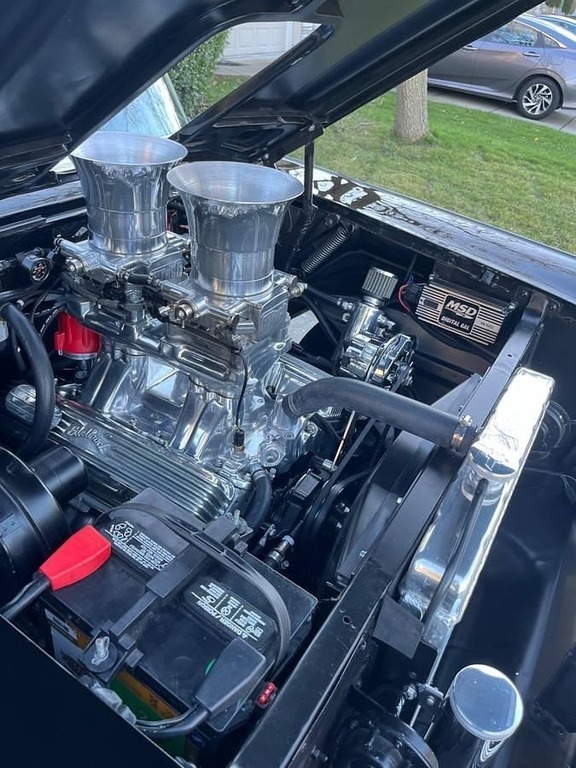 The car is equipped with SSBC front and rear disc brakes, coil overs, and CPP power steering, providing improved handling and braking performance. Additional upgrades include Team 3 ET Mag wheels, Holley RetroBright headlights, and a retro-style radio with Bluetooth for modern convenience while maintaining vintage style. Approximately ten years ago the exterior was refinished in black, all stainless trim was straightened and polished, and a new white and black interior was installed. Recently the vehicle received a refresh including powertrain updates, fluid changes, and new tires, making it ready to enjoy for cruising or car show season.