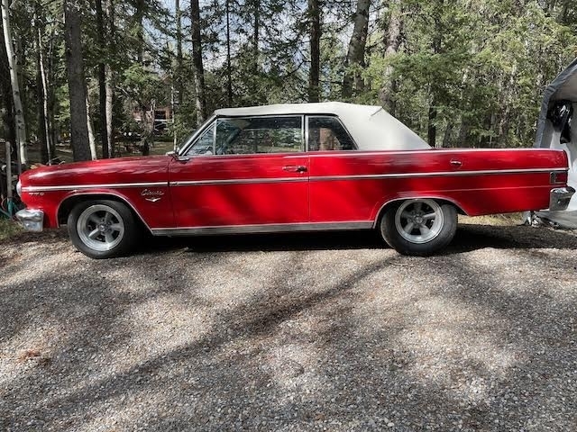 This 1965 Rambler Classic 770 Convertible is a rare and beautiful example, being one of only around 5,000 produced. Finished in the striking P3A Antigua Red with a white convertible top, white boot, and white vinyl interior, it offers an elegant and timeless color combination. The car has had one repaint and a newer convertible top prior to the current ownership and remains in fantastic condition, though not concours. Inside, it features the split bench, fully reclining front seat and retains the comfort and charm that make this model so desirable. Power comes from the 287 cu in (198 HP) V8 engine paired with a 3-speed column-shift automatic transmission, showing only 56,776 miles on the odometer. It rides on American Racing Torque Thrust 15" wheels with BFGoodrich T/A Radials, though the original wheels, tires, and full aluminum knock-off spinner wheel covers are included. Additional accessories include a 1965 Rambler Classic Shop Manual and a custom heavy fabric car cover with soft lining. Previously appraised at $21,500 CAD in 2016 by Appreciated Vehicle Appraisal, this Classic 770 Convertible is a rare find — just a touch of extra TLC away from being a true show-stopper at any local car show or cruise night.
