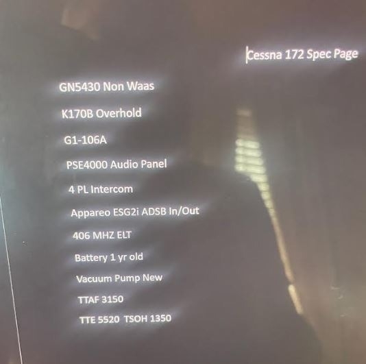 For sale is a 1967 Cessna 172, ready for your flying adventures! This aircraft has been meticulously upgraded and maintained with several new features. The interior has been fully redone with new carpet, seat belts, and many plastic interior pieces. It also features new split-type strut fairings and a new battery. The vacuum pump, overhauled airspeed indicator, altimeter, tires, and brakes have all been replaced, and the fuel senders have been rebuilt. Additionally, the transponder antenna has been updated, and the plane is equipped with a 4-place intercom, new circuit breakers, avionics master switch, and fresh avionics wiring. The aircraft has a history of damage but has been repaired and is in great flying condition. The annual inspection is due in September 2025, and it is currently in the shop for a new weight and balance, transponder, and pitot static certification. The total time airframe (TTAF) is 3150 hours, with the engine time (TTE) at approximately 5520 hours. The engine has a TSO of 1361 hours, with all compressions ranging from 72-75/80, except for cylinder #5 at 68/80. The engine runs smoothly with 50 psi oil pressure. The aircraft is equipped with a non-WAS Garmin 430 GPS, KX170B overhauled radio, and Appareo ESG2I Transponder ADSB In and Out for improved communication and navigation also equipped with a 406MHZ ELT. This Cessna 172 is a great aircraft for both new and seasoned pilots looking for a solid, upgraded plane for their flying adventures!