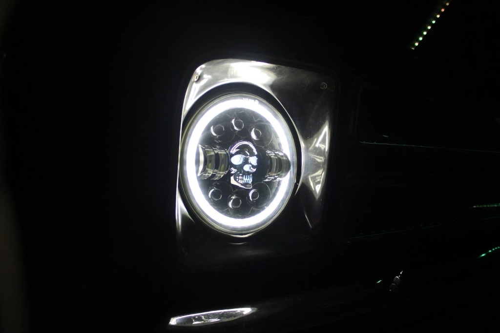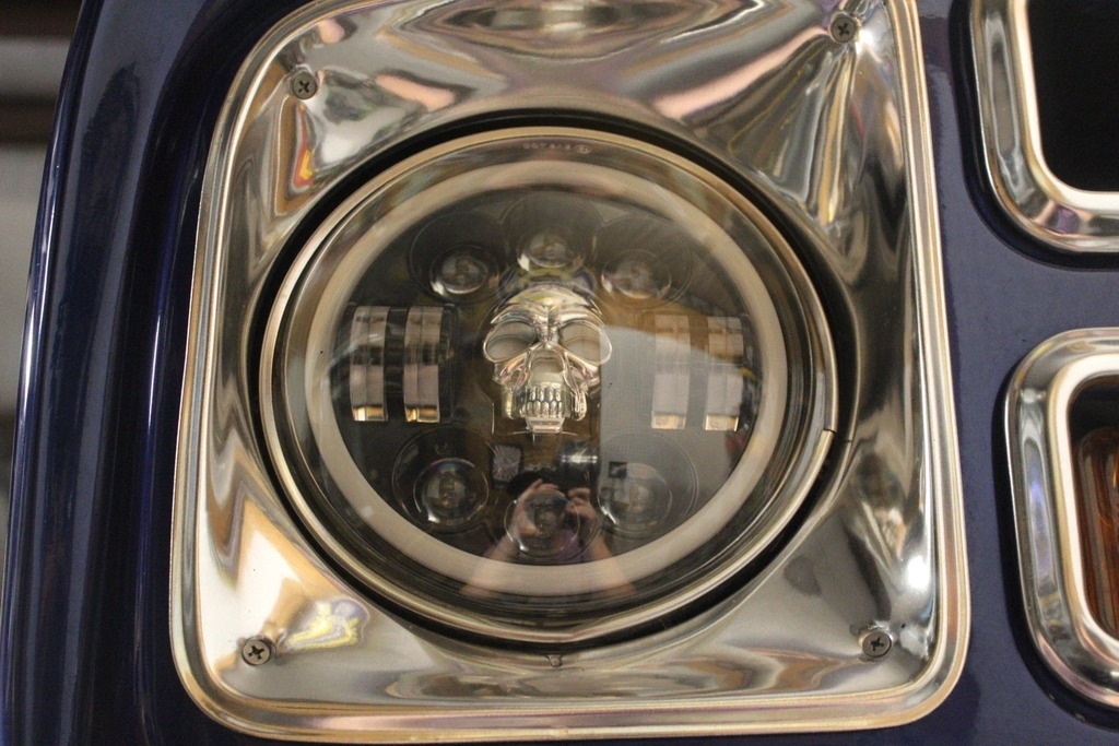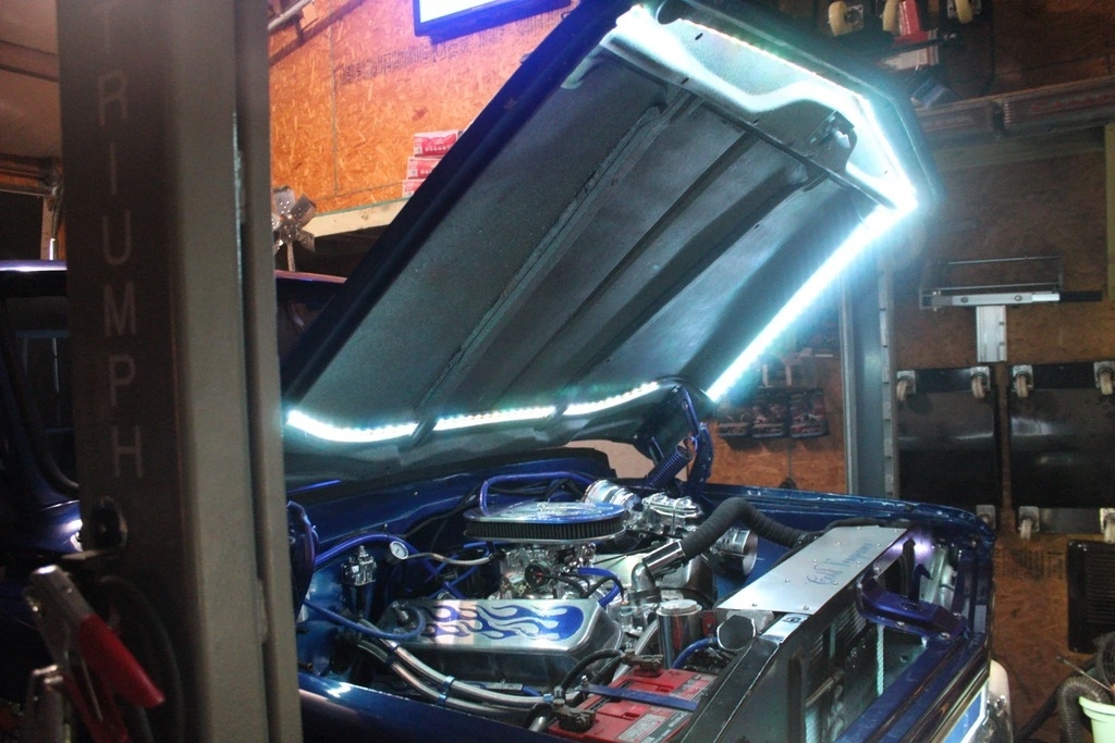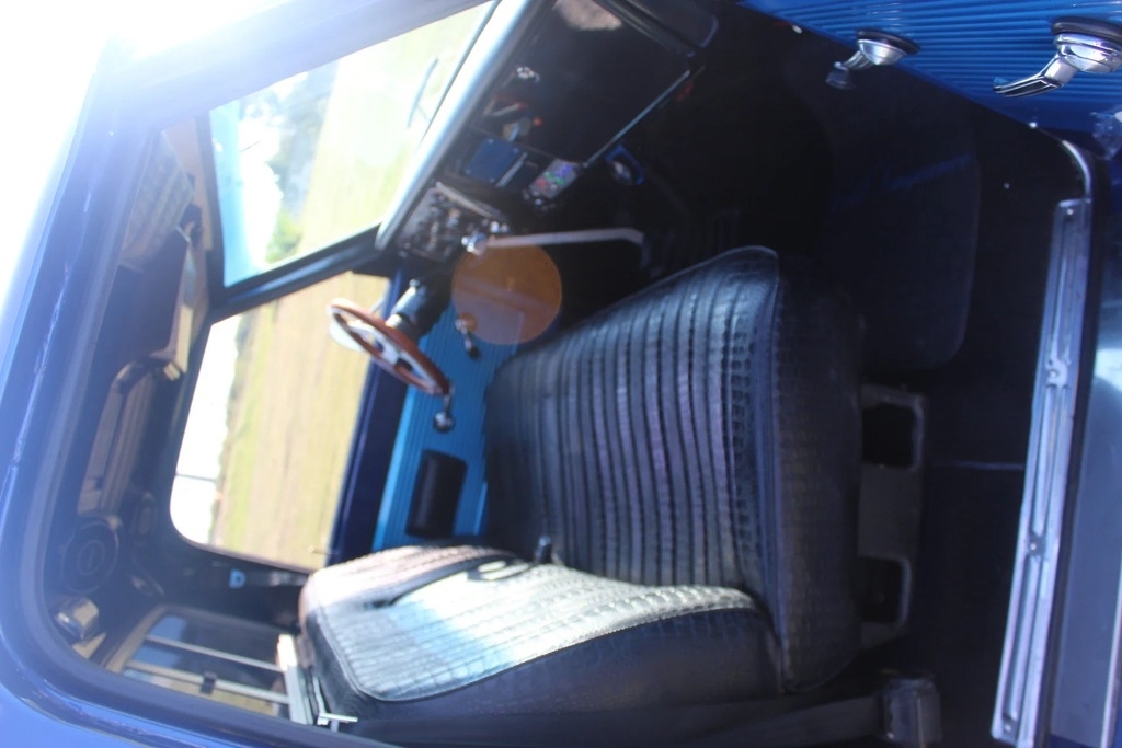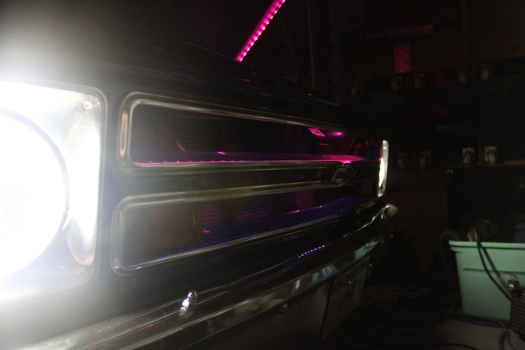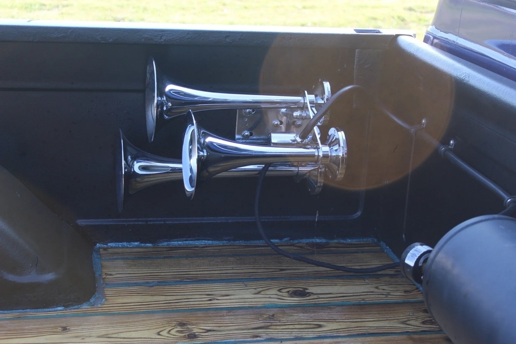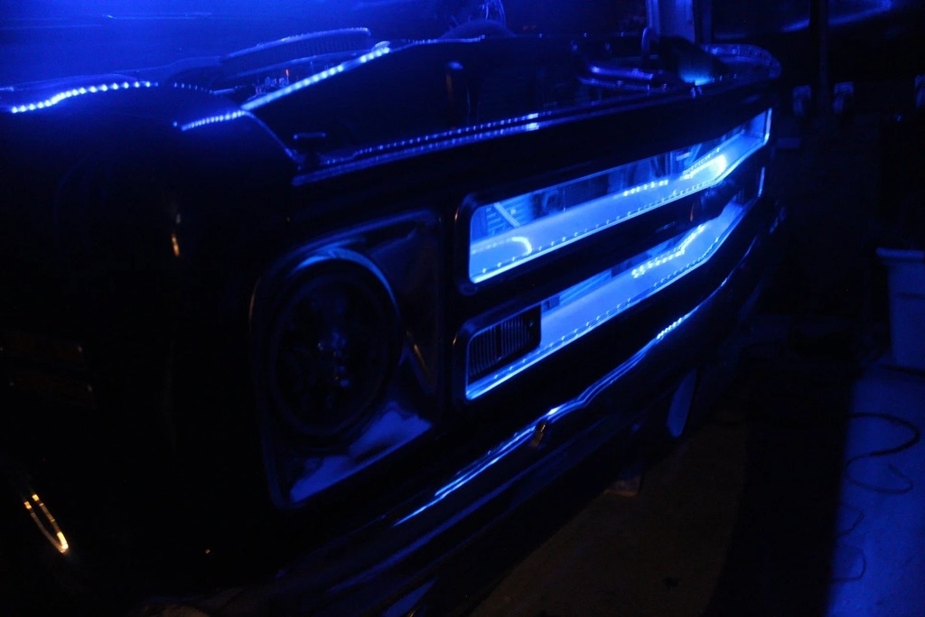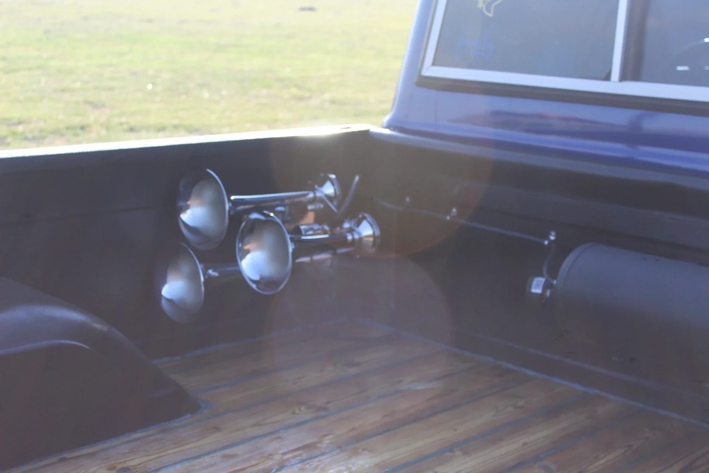 This 1968 Chevrolet C-10 (“Cold Vengeance”) is a fully restored, highly customized classic truck with extensive body, interior, chassis, and drivetrain work detailed in the listing. The body and interior are described as fully restored with no rust and finished in a custom blue with purple pearl paint, along with custom headlights. The truck has had all wiring harnesses replaced, resulting in brand-new wiring throughout. Interior upgrades include custom fake alligator skin upholstery (bench seat and visors), a custom in-mount speaker headliner, an Intellitronix digital gauge cluster with GPS speedometer, restored interior components, and a subwoofer system under the seat. It is built on an electric air compressor system with a train horn, includes a custom wood grain bed, new emblems and lenses, and the underbody has been sandblasted and coated. Rolling stock includes Cragar 5-spoke aluminum rims with BF Goodrich tires. The braking system is upgraded with front disc brakes and rear drums, all new brake lines, a chrome 8-inch brake booster, and a CPP chrome master cylinder. Additional details include a rear cab sliding window, new trim and bezels, custom one-piece door glass windows (no vent windows), a wood grain Grant steering wheel, a custom floor shifter, rebuilt steering column, new bearings, new ball joints, and a wideband fuel/air ratio gauge. The listing notes it has been garage kept.