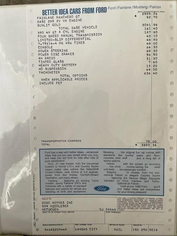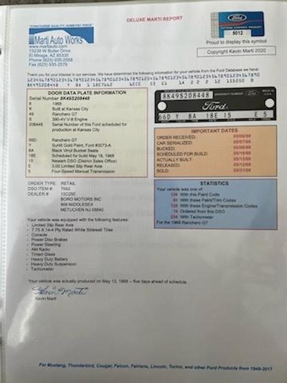 1968 Ford Ranchero 390 GT This 1968 Ford Ranchero 390 GT has undergone a full professional rotisserie restoration. Powered by a blueprinted and balanced 390GT engine with 428 heads, Comp cam, Edelbrock RPM intake, FITech EFI, MSD ignition, Melling high-volume oil pump, and FPA long tube headers, it’s paired with a Ford top-loader 4-speed and Currie limited-slip rear. Additional features include Wilwood disc brakes, stainless exhaust, and original options like AC, power steering, and power windows. Comes with documentation and a Marti report. Located in Chesapeake, VA 23320 For more information, please call 833-265-6113 and mention ID 32115