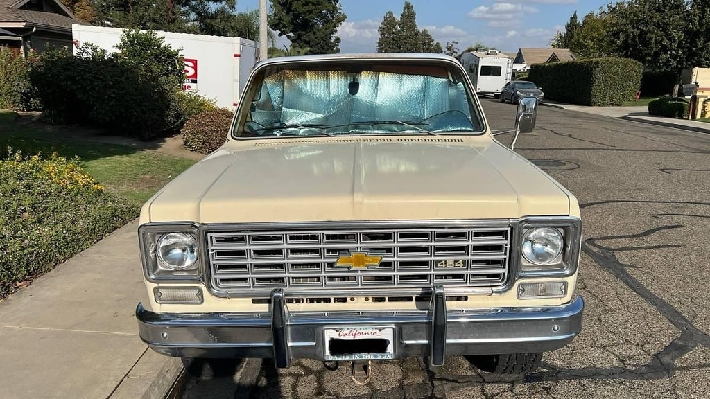 This all-original 1975 Chevrolet Cheyenne C20 long-bed pickup pairs classic style with smart reliability upgrades. It’s powered by a refurbished 454 V8 (installed under two years ago, ~90k miles) mated to an automatic transmission and rear-wheel drive. A recent fuel-injection upgrade improves drivability, starts, and throttle response. Finished in white, the truck presents in good overall condition with an interior that stays true to its period look. The odometer reads approximately 93,800 miles (operative), and the title is clean. Included with the sale are extensive service records, the original owner’s manual, a vintage Chevy parts/accessories catalog from the prior owner, replacement mirrors, and a referral to the mechanic most familiar with the truck—making this a well-documented, strong-running Cheyenne ready for its next caretaker.