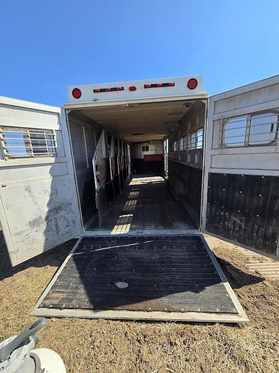 The 1986 Lite Line 9 Horse trailer is the perfect solution if you need to haul 4, 5, 6, or even up to 9 horses at a time. This well-kept, sturdy 1986-built trailer may surprise you with how clean and lightweight it is for its size. Inside, the trailer is 81" tall, and the outside width is 8'. It features a versatile layout, with a front double slant that includes a stud wall, followed by 5 single slants that are about 40" wide, and 2 double-sized slants that each hold 2 horses. You can haul up to 7, 8, or even 9 horses depending on your needs. We’ve hauled big quarter horses and thoroughbreds regularly, and the trailer is even tall enough to comfortably fit our 19 1/2-hand Percheron. The trailer has a clean, clear title, great tires, and it hauls perfectly behind both an F350 and F250—barely even noticing it’s there! With a storage/tack area, drop-down side door ramp, back door ramp, and a large front stud door, this trailer offers plenty of space and options for easy loading and unloading. It’s a fantastic option for anyone who regularly transports horses.