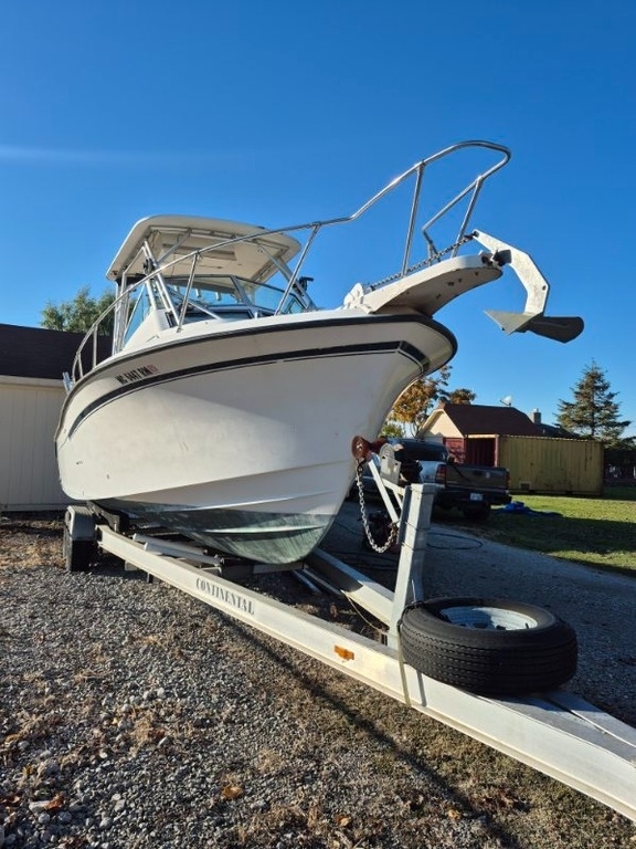 This 1987 Grady White Sailfish 25 Sportbridge is a well-built offshore fishing boat known for its rugged construction and smooth handling. The hull is in excellent condition, showcasing Grady White’s renowned quality and durability. Powered by twin 2002 Yamaha 200HP outboard engines that run great and have been properly fogged and winterized, this vessel has strong potential with a bit of attention. The fuel tanks will need to be replaced, as they currently won’t hold fuel. Included in the sale is a sturdy Continental trailer, making transport and storage simple. With its classic layout and proven performance, this Sailfish 25 is a great project opportunity for anyone looking to own a legendary offshore-capable boat.