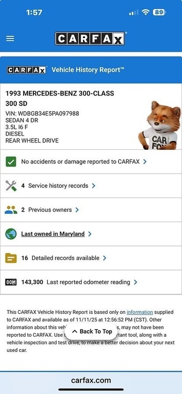 1993 Mercedes-Benz 300SD This 1993 Mercedes-Benz 300SD sedan is a classic example of Mercedes diesel engineering. The vehicle has been well cared for and includes recent updates such as a replacement wiring harness, brakes, tires, and air conditioning compressor. All gauges and the clock function properly. The radio displays an E2 code, likely due to limited use. A solid opportunity for collectors or enthusiasts seeking a well-preserved luxury diesel sedan. Located in Quantico, MD 21856 For more information, please call 833-265-6113 and mention ID 66757