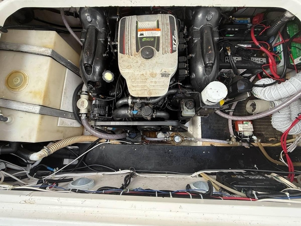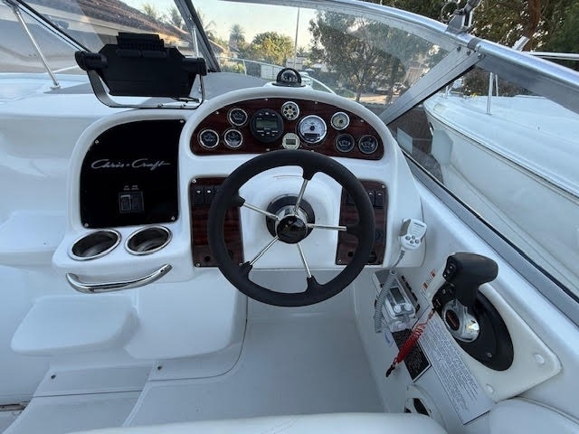 This 1997 Chris Craft 26 Crowne has been thoughtfully repowered and modernized, ensuring it is both solid and clean, ready for water adventures. It features a 2012 377 MAG ERC DTS electronic shifting engine with only 325 hours, equipped with all original Mercury parts including a new starter, alternator, belt, starting coil, fuel module, electronic shifting, and throttle control, with receipts available. The boat boasts a new Coosa transom, a reliable steering system, and Bravo 3 dual propellers. Additional enhancements include a Garmin ECHOMAP Ultra 2 106sv Fish Finder/Chartplotter with Navionics+, a new NOCO 3 battery charger, three batteries, a full bimini enclosure, three new bilge pumps, and a new sump pump. The JBL sound system, NMEA 2000, and GT56UHD transducer add to the modern amenities. The fuel tank is clean and filled with Rec 90 fuel, and the main switches and fuse boxes were updated in February of this year. This boat is perfect for family outings and overnight trips, and it is only being sold due to the acquisition of a larger vessel.