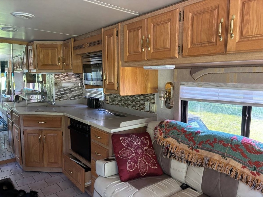 This 1999 Holiday Rambler Endeavor is a fully updated and meticulously maintained diesel pusher that’s road-ready and in exceptional condition. Powered by a reliable 5.9L diesel engine paired with a 6-speed Allison automatic transmission, it delivers dependable performance and impressive fuel efficiency at around 10 mpg. This motorhome has undergone extensive upgrades, including new airbags, hardwood floors, updated furniture, flux leather driver and passenger seats with lumbar support, matching twin electric recliners with tables, and a jackknife hide-a-bed sofa. Comfort features include tile bathroom and backsplashes, new heat pumps, new convection microwave, propane cook stove and oven, new propane furnace plus an additional diesel furnace, new start and house batteries, and newer porcelain toilet. With a full wall slide and topper, awnings on every window and door, remote heated mirrors, and a 4-camera recording system, it’s designed for both comfort and safety. Entertainment is enhanced with two flat-screen TVs, satellite system, stereo/CD player, and new speakers. Mechanical highlights include new radiator, A/C pump, alternator, new tires with alignment, air brake dryer upgrade, newer exhaust with exhaust brake, plus fresh oil and filters for both the engine and generator. Documented maintenance since new is available with receipts, and the generator shows 1,000 hours. Finished in full-body paint with no decals, real wood cabinetry, and porcelain tile accents, this Endeavor is a turn-key coach that needs nothing—built stronger and cared for better than most newer models.
