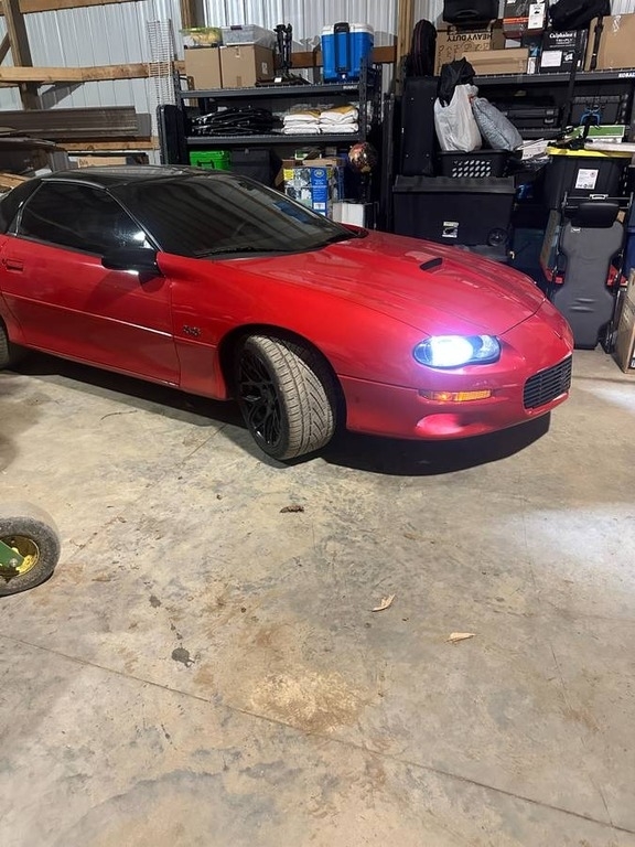 For sale is a 1999 Chevrolet Camaro SS in exceptional condition, featuring a 6-speed manual transmission and a clean title with no history of accidents or flood damage. This garage-kept classic runs and sounds great, with zero cracks or rips on the interior seats, dash, or panels—showing minimal wear throughout. It sits on a square stance with Continental Extreme Contact tires and sports a red and black color scheme, enhanced by smoked lights, dark tinted windows, and custom black rims (original rims included and in excellent condition). Recent upgrades include a new clutch (Spring 2024), SLP CAT-back exhaust (2023), Volant cold air intake (original included), center-mounted quad exhaust tips, and a modern Apple CarPlay/Android Auto head unit with upgraded speakers (original head unit also included). The sail panel shows only minimal bubbling—common for these models—but remains in outstanding shape due to being stored indoors and away from harsh weather. This car is a well-cared-for, unmolested classic that turns heads and is ready for road trips—having recently made a long journey to North Carolina and back in comfort. It includes two keys with fobs, and while it will need brakes soon, high-quality pads and rotors are included with the sale. Don’t miss this rare opportunity to own a Camaro SS with low miles and outstanding originality.